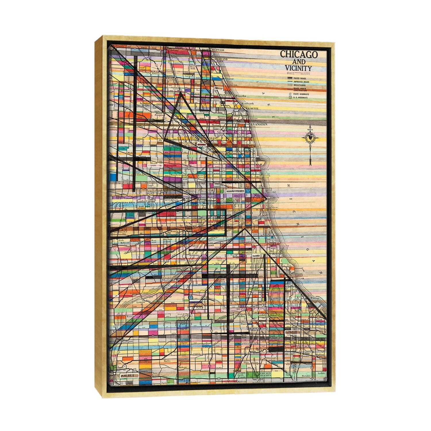 iCanvas "Chicago Gold Leaf Urban Blueprint Map" by Hubert Roguski Framed Canvas Print