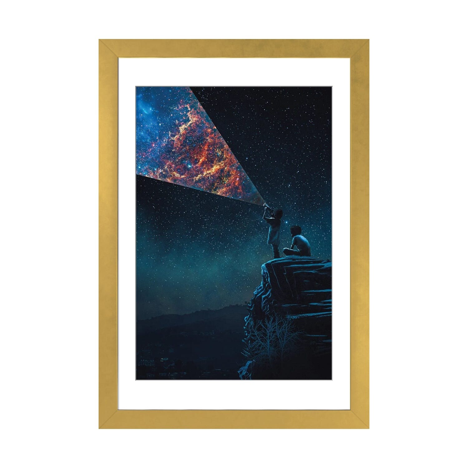 iCanvas "Children Looking Up Fireplace" by Norman Rockwell Framed Canvas Print
