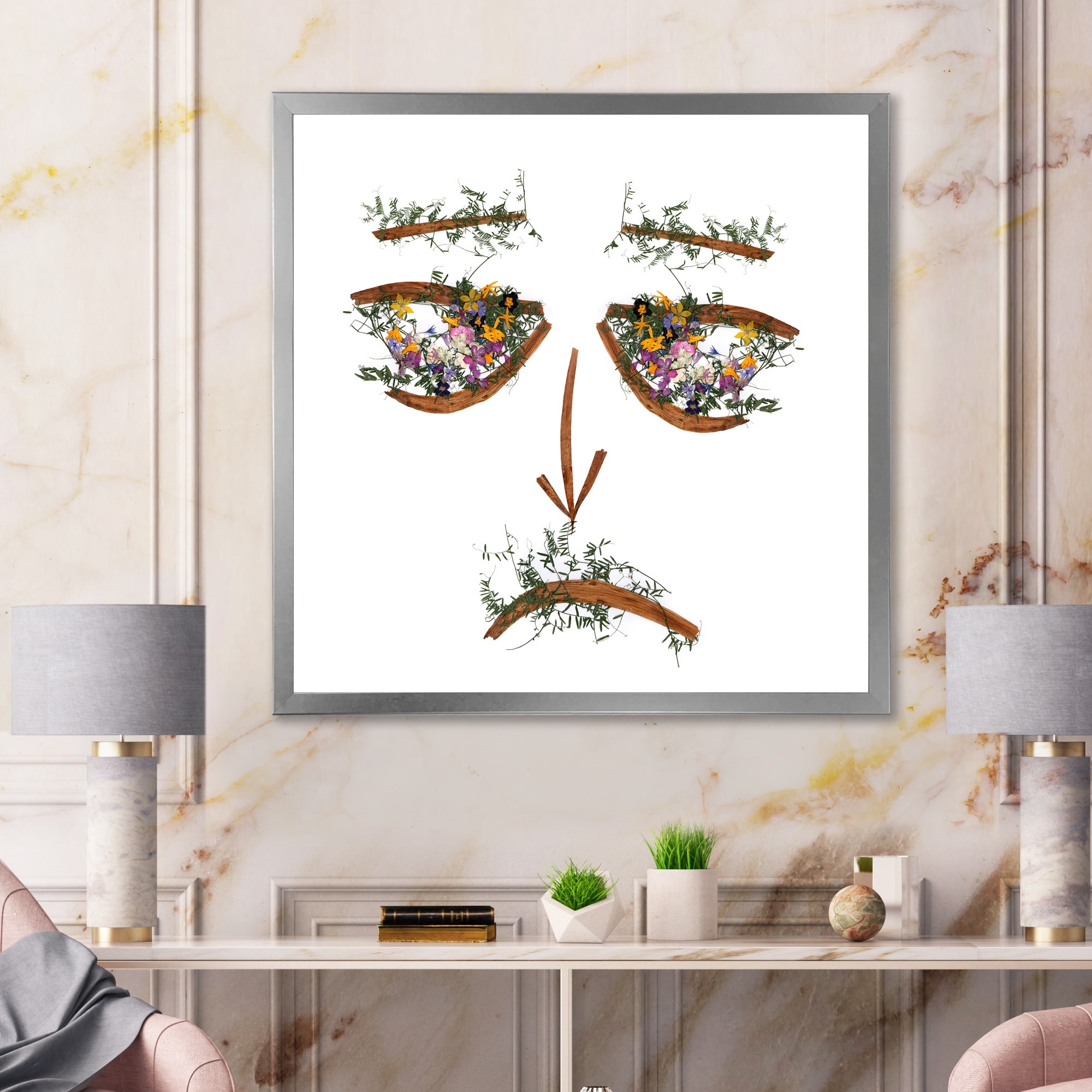 Designart "Sad Male Face of Dried Pressing Bright Flowers" Children's Art Framed Art Print