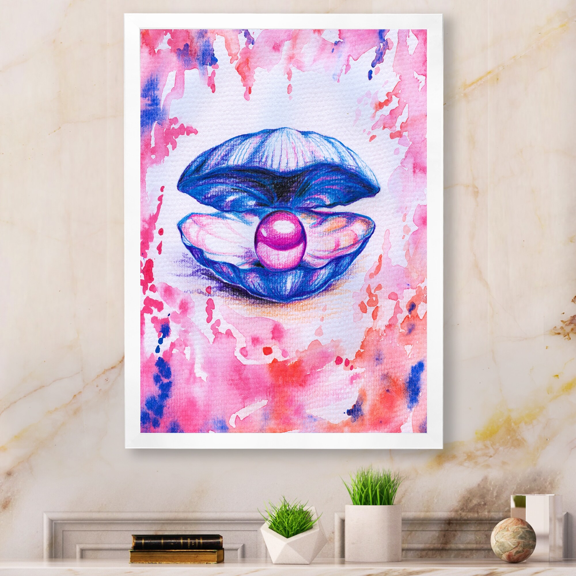 Designart "Pink Pearl Coastl Art" Children's Art Framed Wall Art