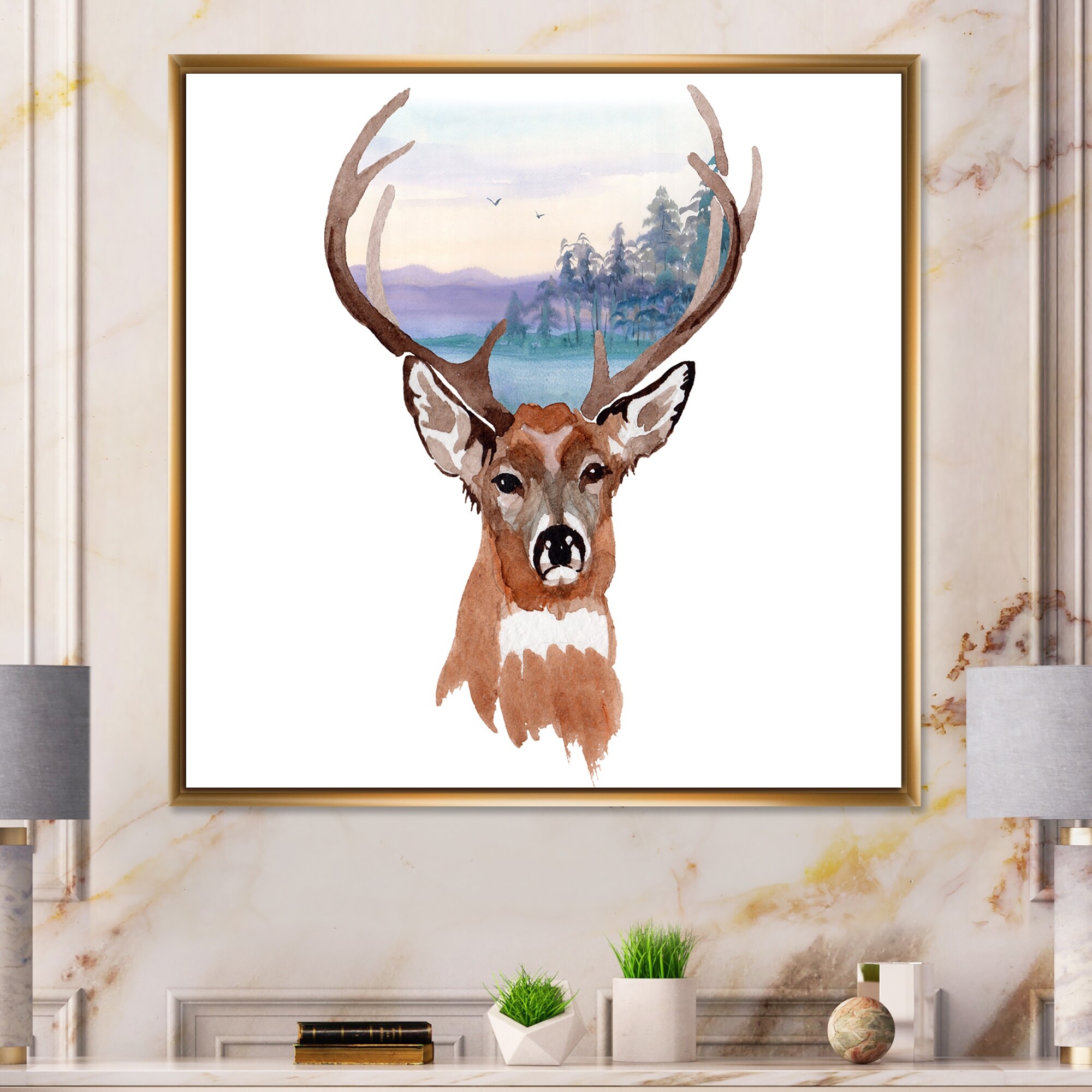 Designart "Reindeer In Winter Landscape" Children's Art Framed Canvas Wall Art