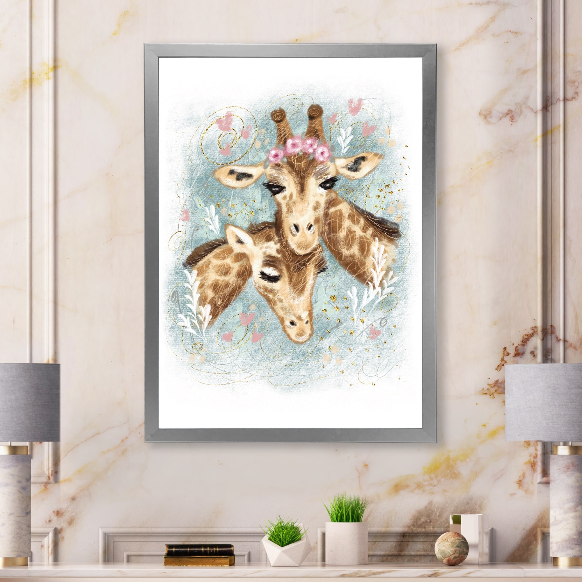 Designart "Cute Giraffe With Flower" Traditional Framed Children's Wall Decor