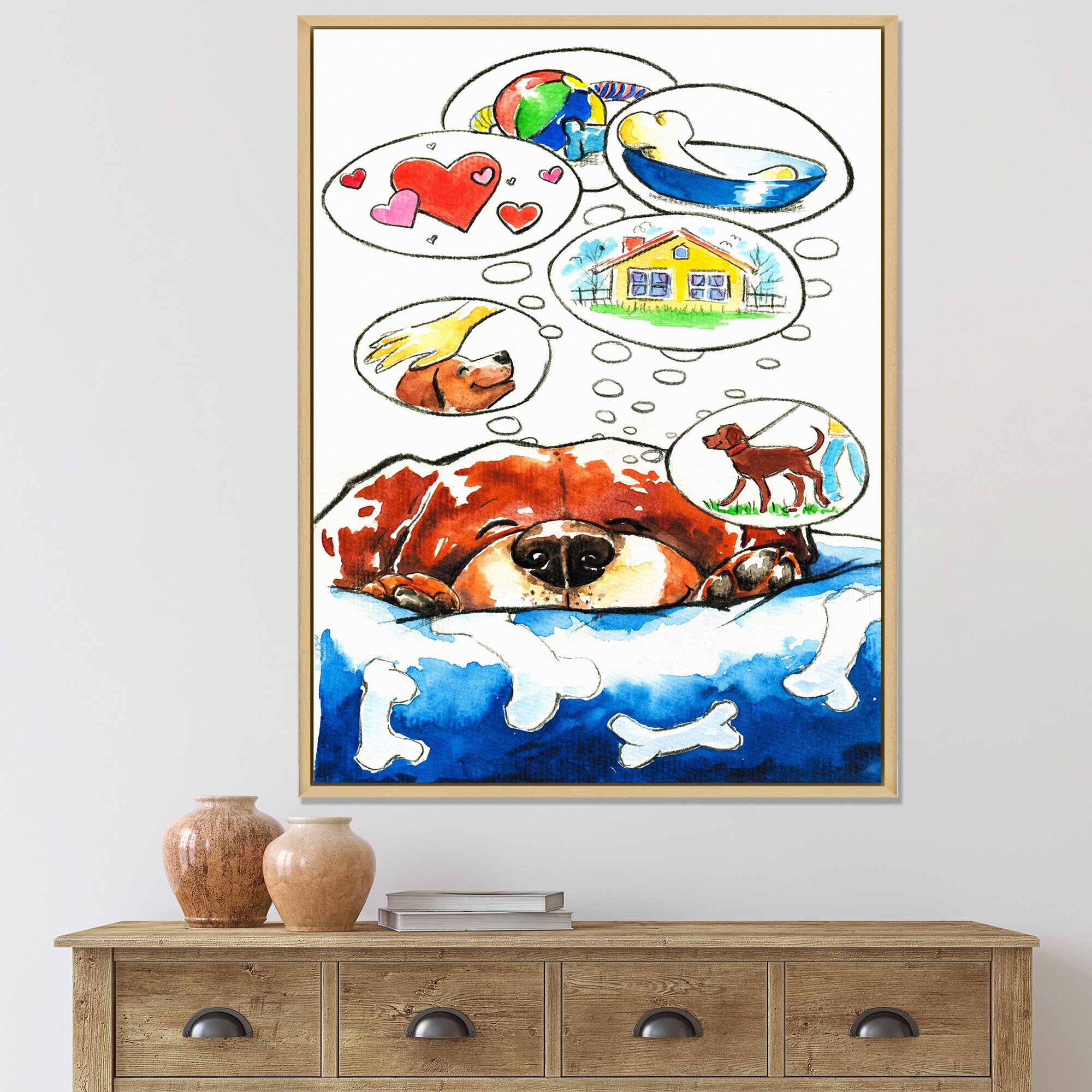Designart "Dog Dreams" Children's Art Framed Canvas Wall Art Print