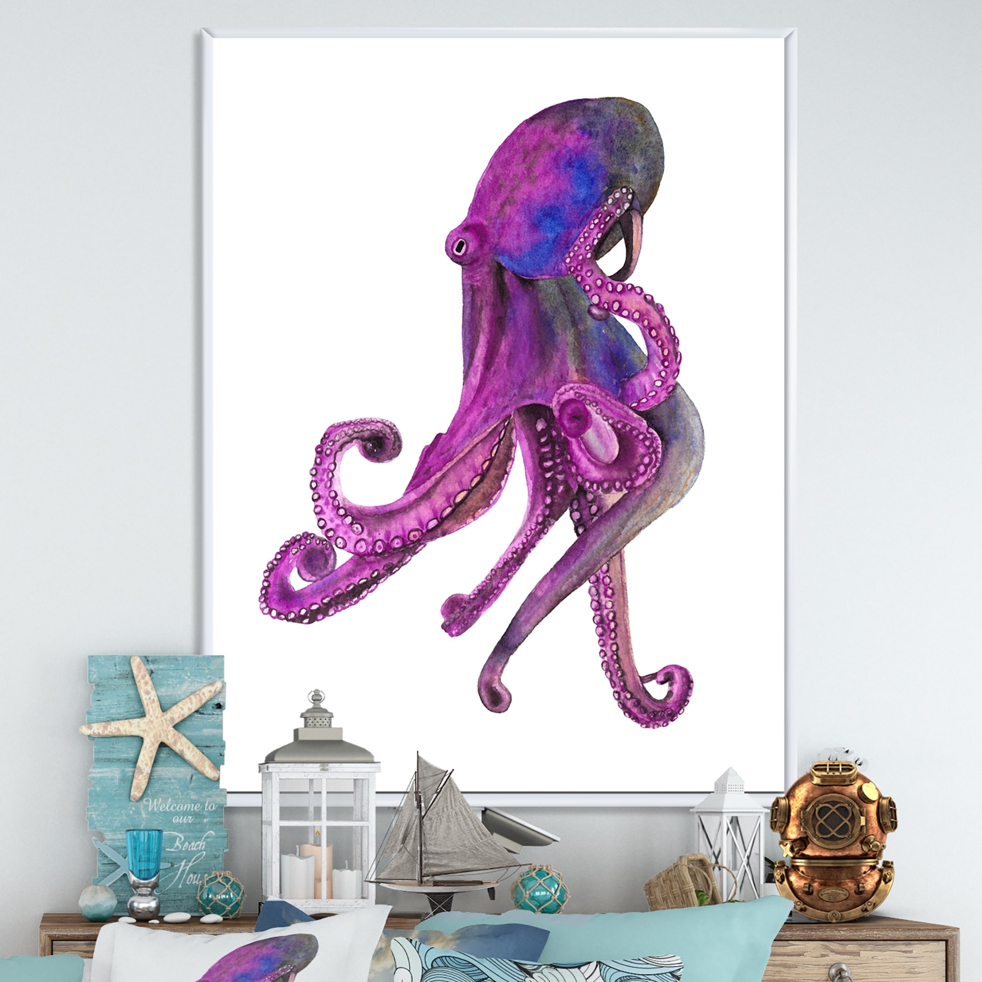 Designart "Cute Purple Octopus Sea" Nautical & Coastal Framed Children's Canvas Art Print
