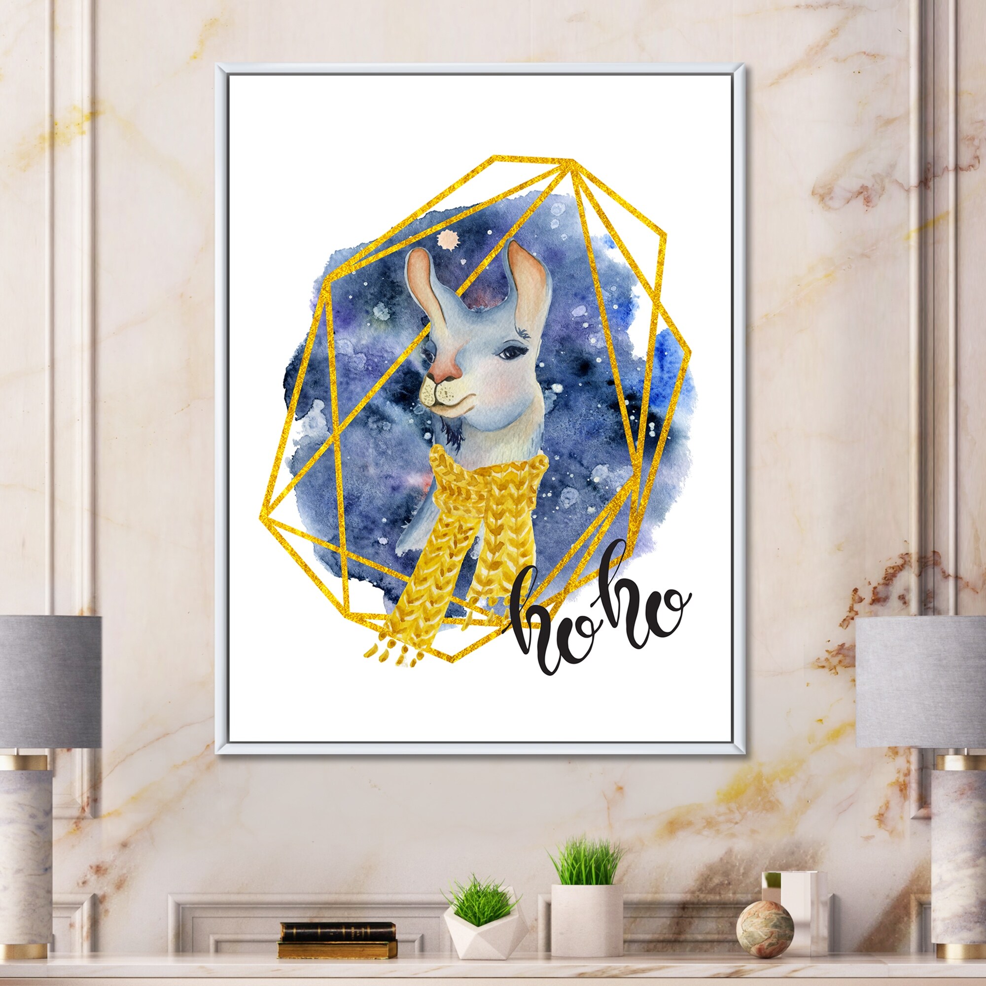 Designart "Cute Llama Cartoon Portrait II" Children's Art Framed Canvas Wall Decor