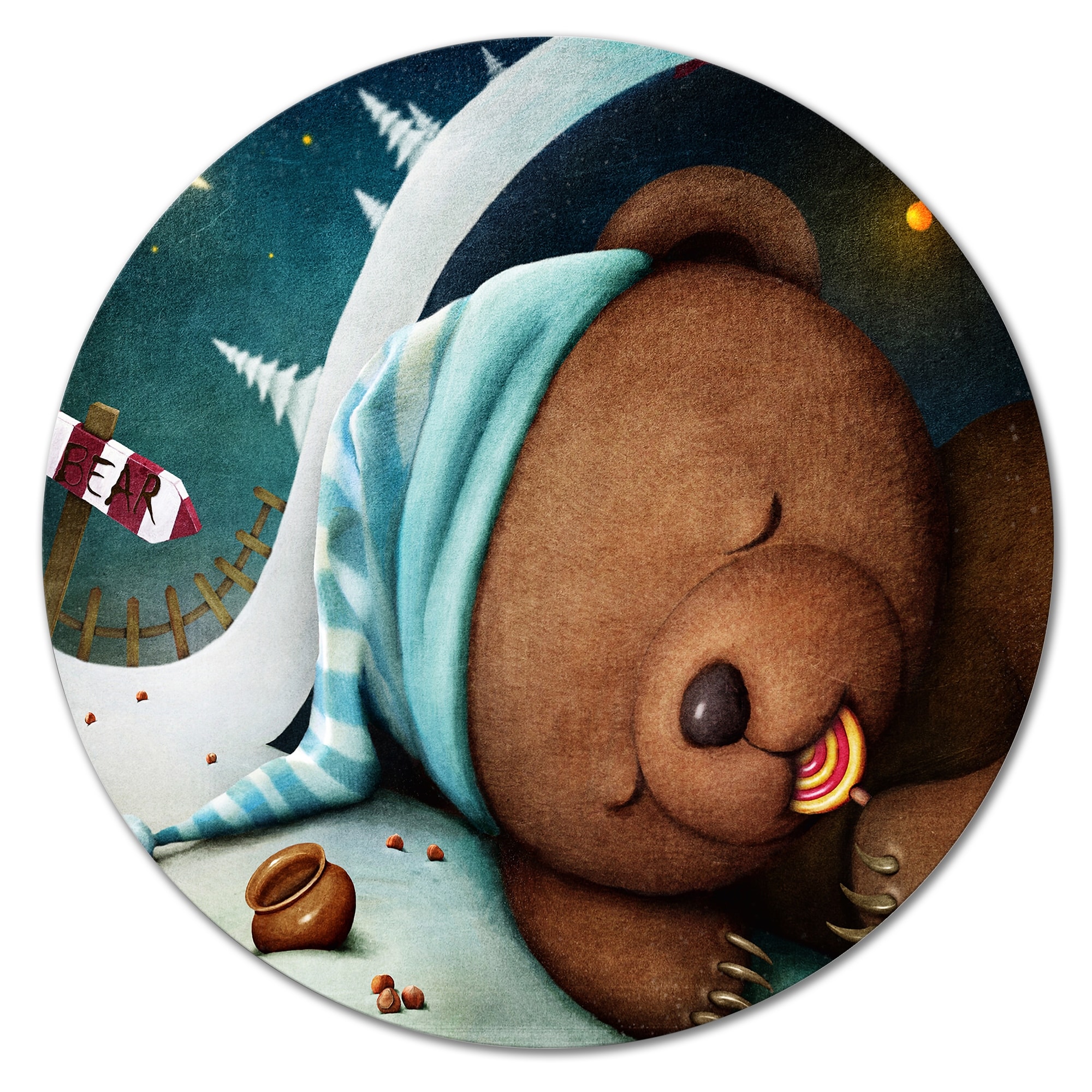 Designart 'Bear Sleeping in the Den' Children's Art Metal Circle Wall Art
