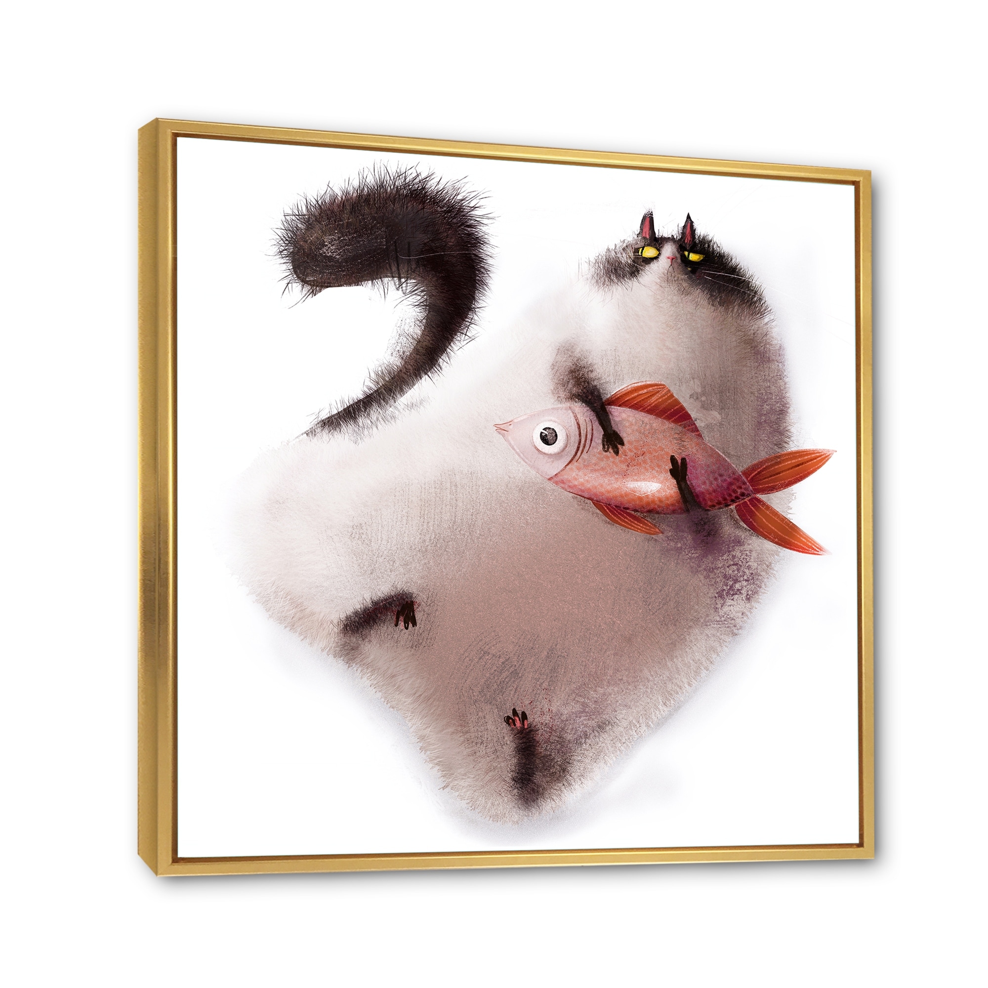 Designart "Cartoon Cat With A Little Fish" Children's Art Framed Canvas Wall Art Print