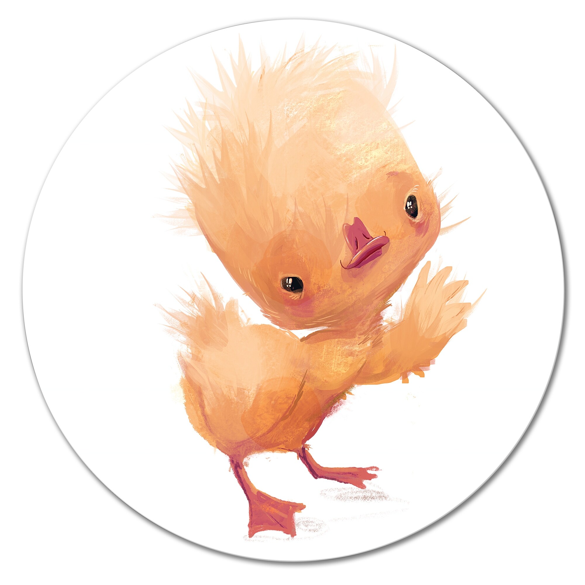 Designart 'Cute Funny Little Yellow Duckling Character' Children's Art Metal Circle Wall Art