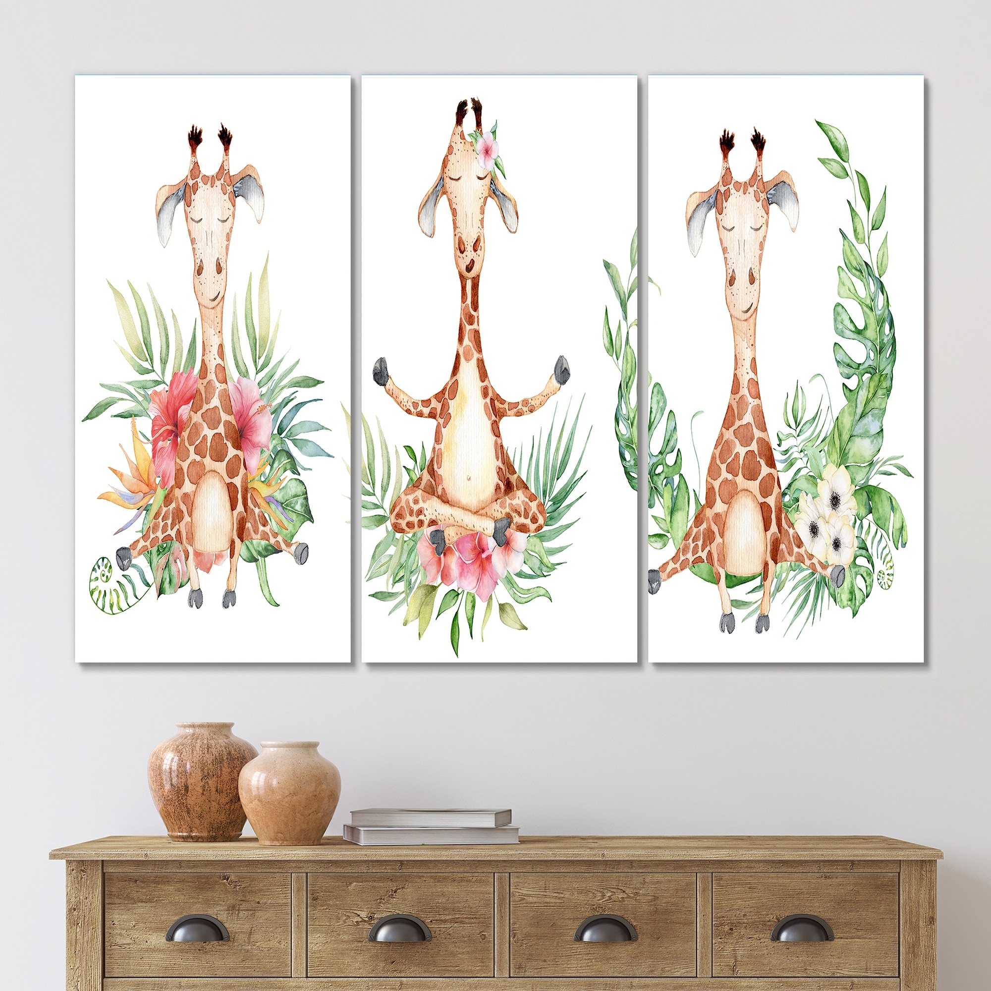 Designart "Cartoon Giraffe With Tropical Flowers I" Children's Art Canvas Wall Art Print