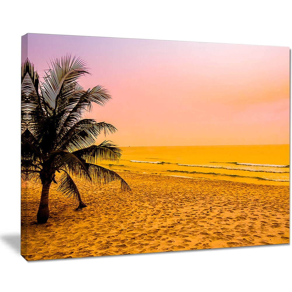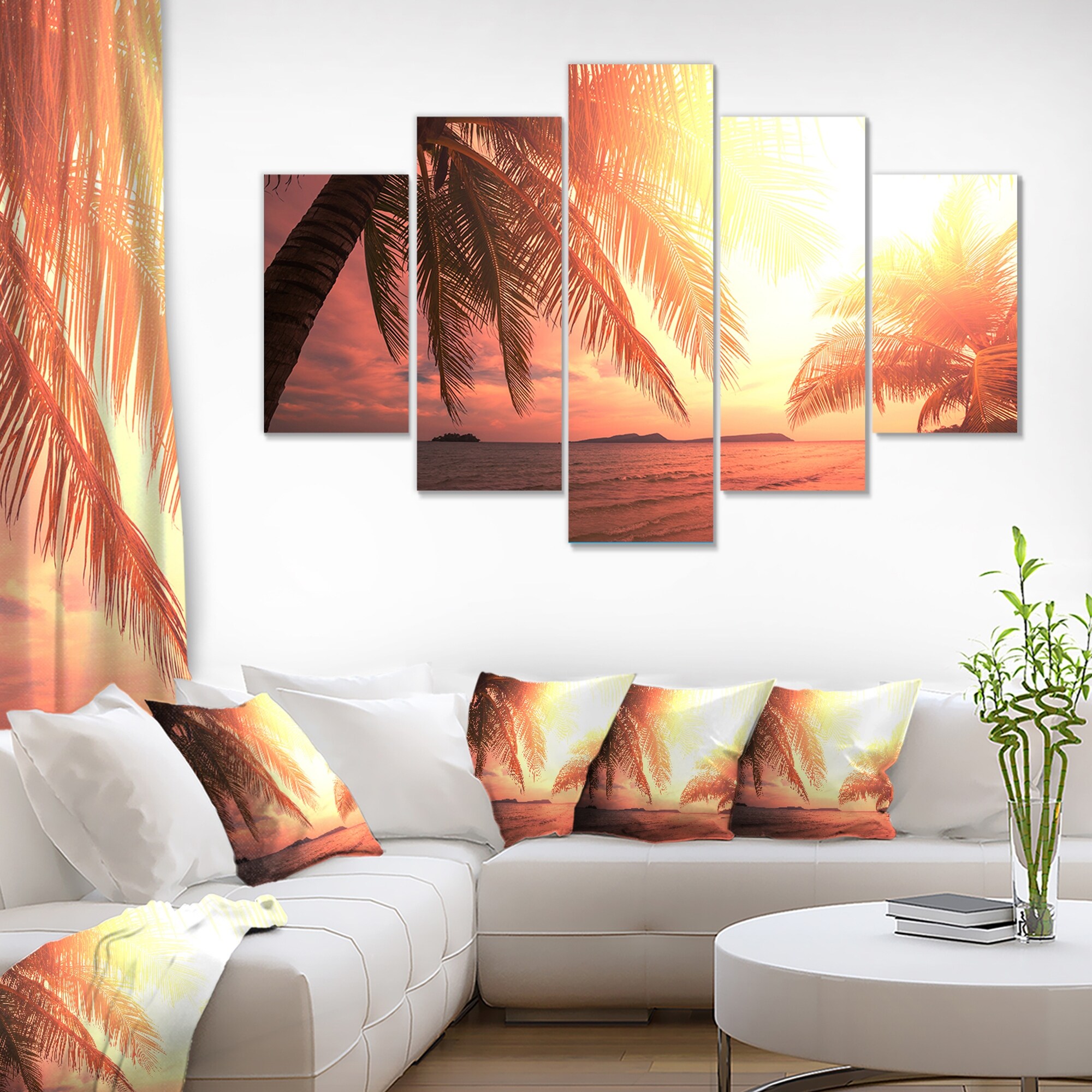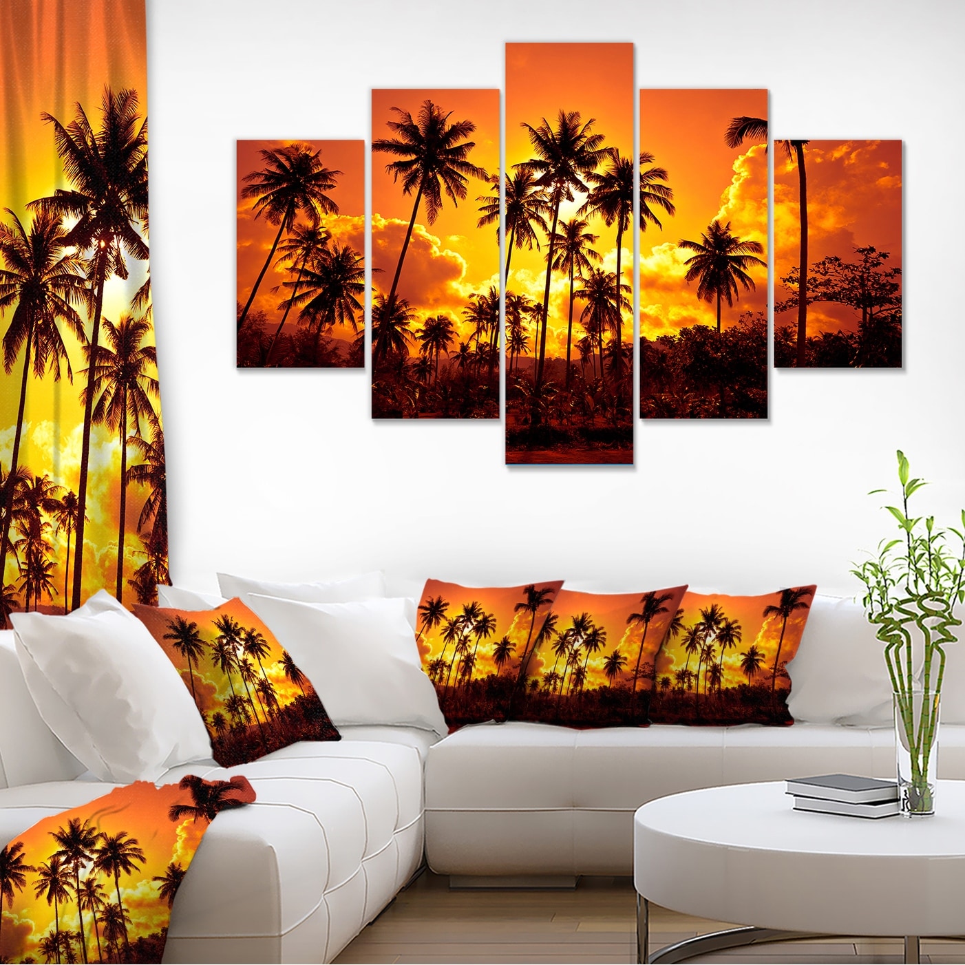 Designart "Coconut in Golden Sunset" Landscapes Sea & Shore Photographic on Wrapped Canvas set