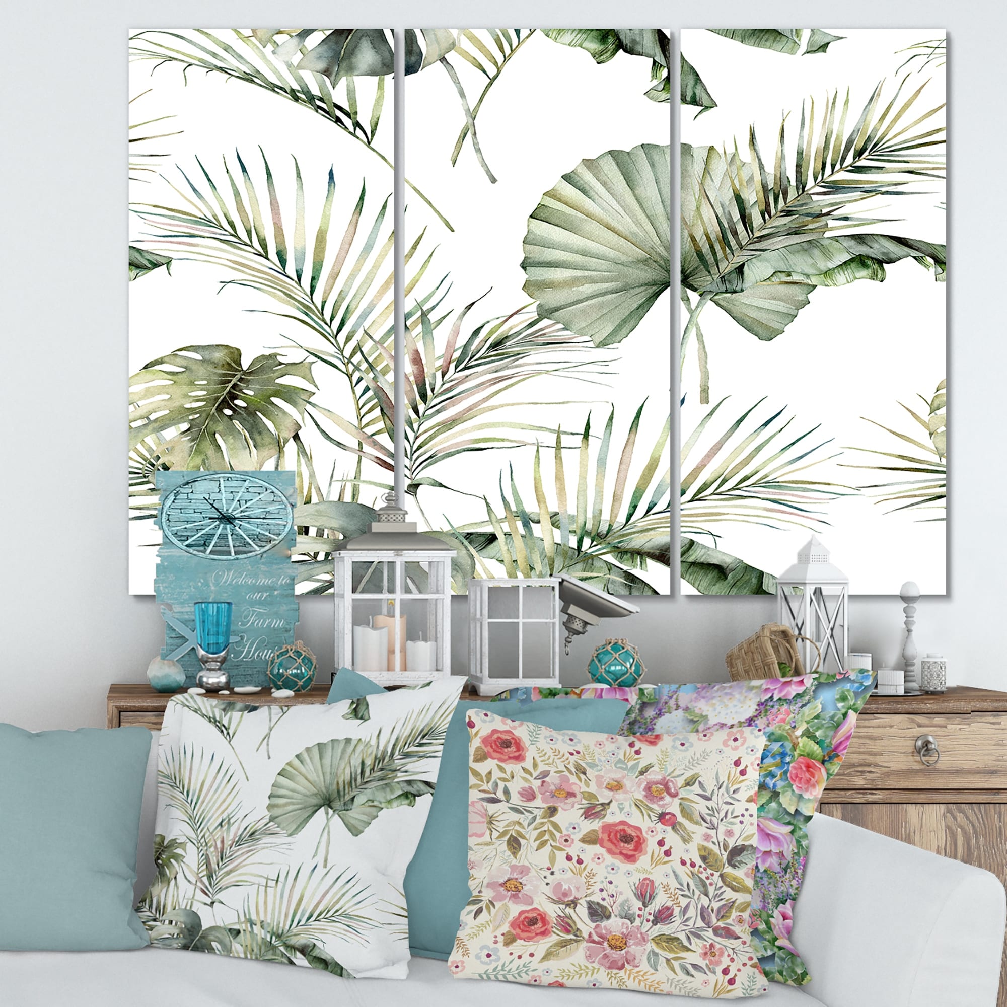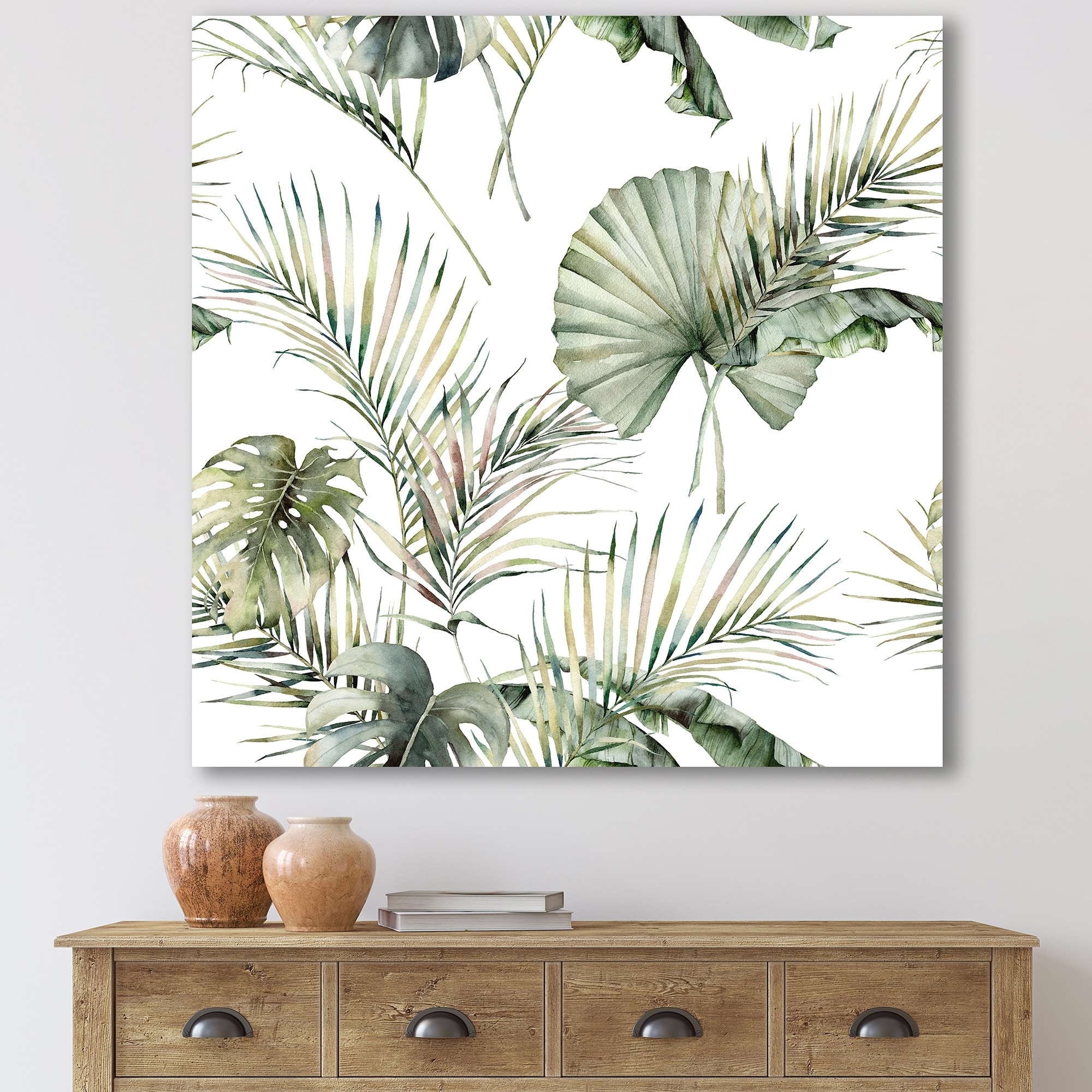 Designart "Tropical S Pattern With Monstera & Coconut Leaves" Traditional Canvas Wall Art Print