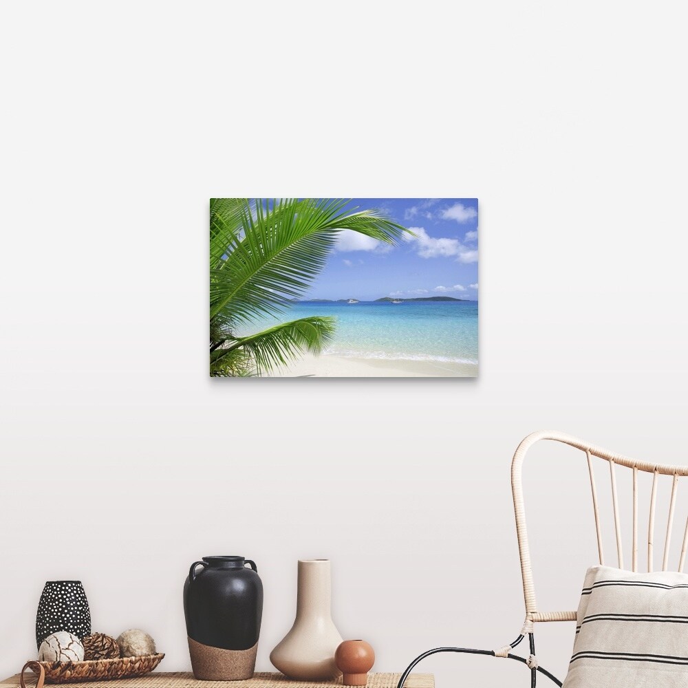 "Coconut palm tree, beach, and ocean in the Virgin Islands, Caribbean" Canvas Wall Art