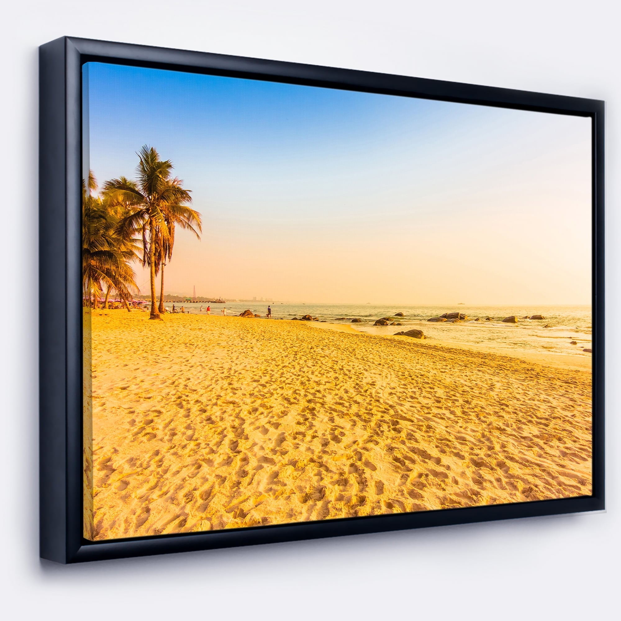 Designart "Coconut Palm Trees on Beach" Landscape Photography Framed Canvas Print