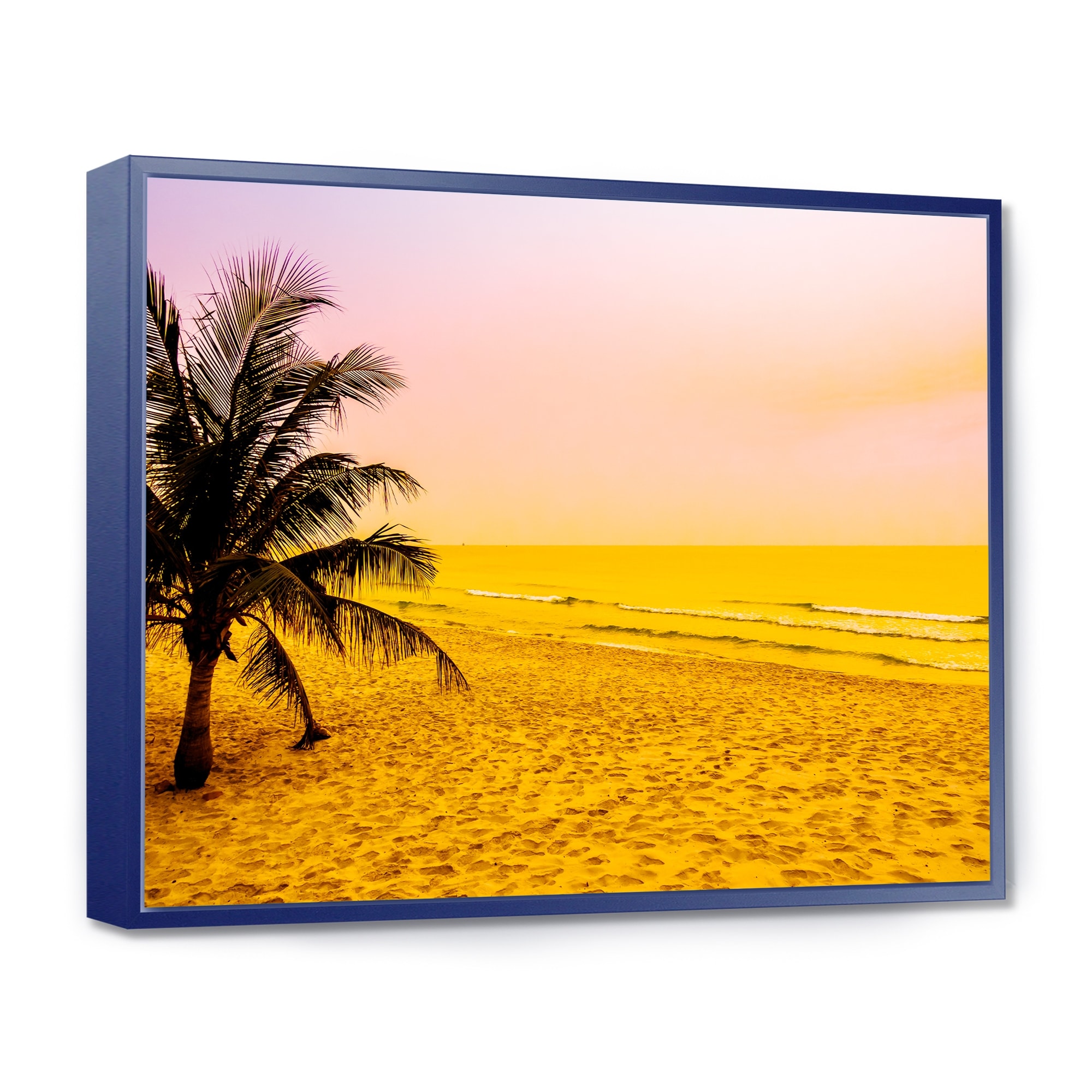Designart "Coconut Palms Against Yellow Sky" Landscape Photography Framed Canvas Print