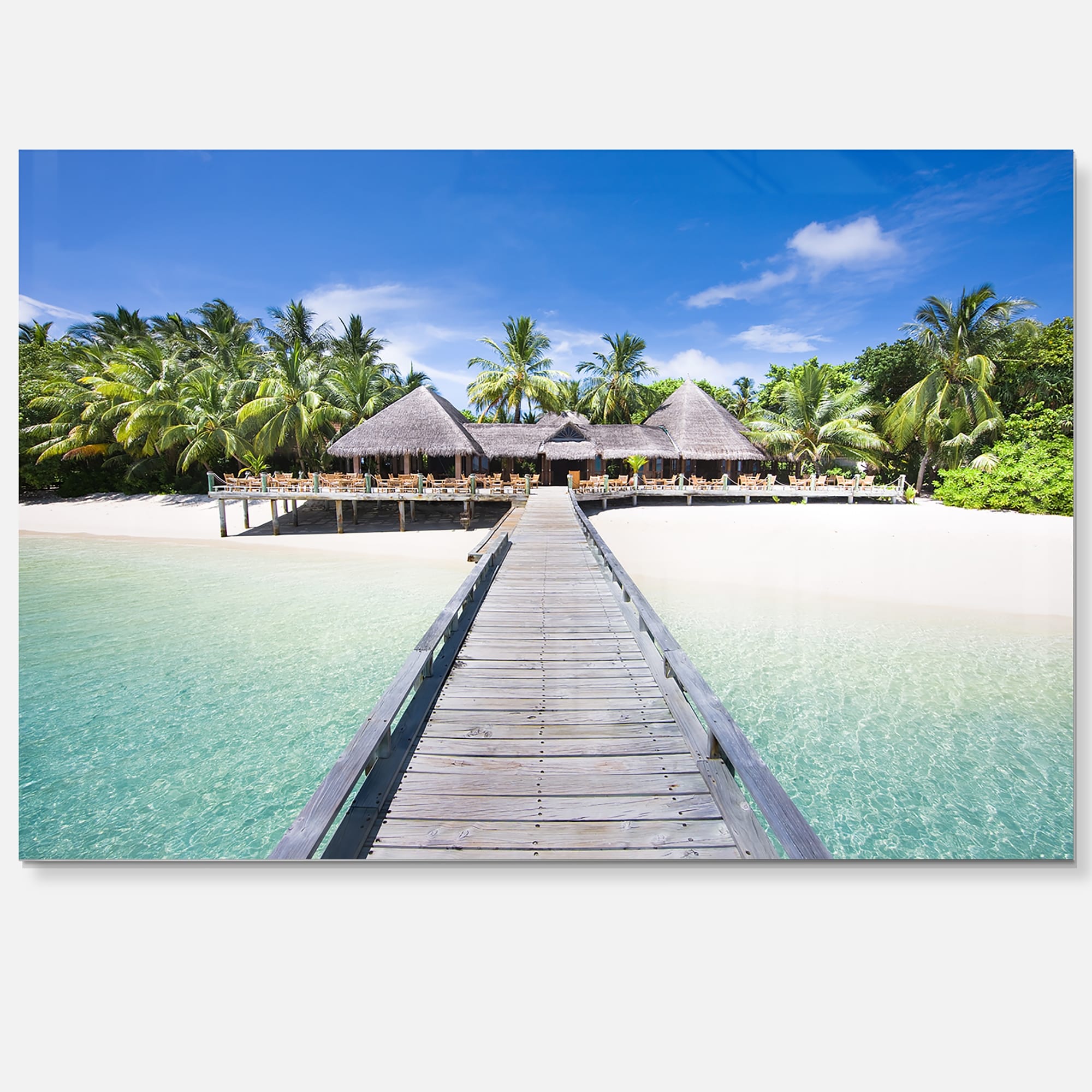 Designart 'Beach with Coconut Palm Trees' Landscape Photo Metal Wall Art