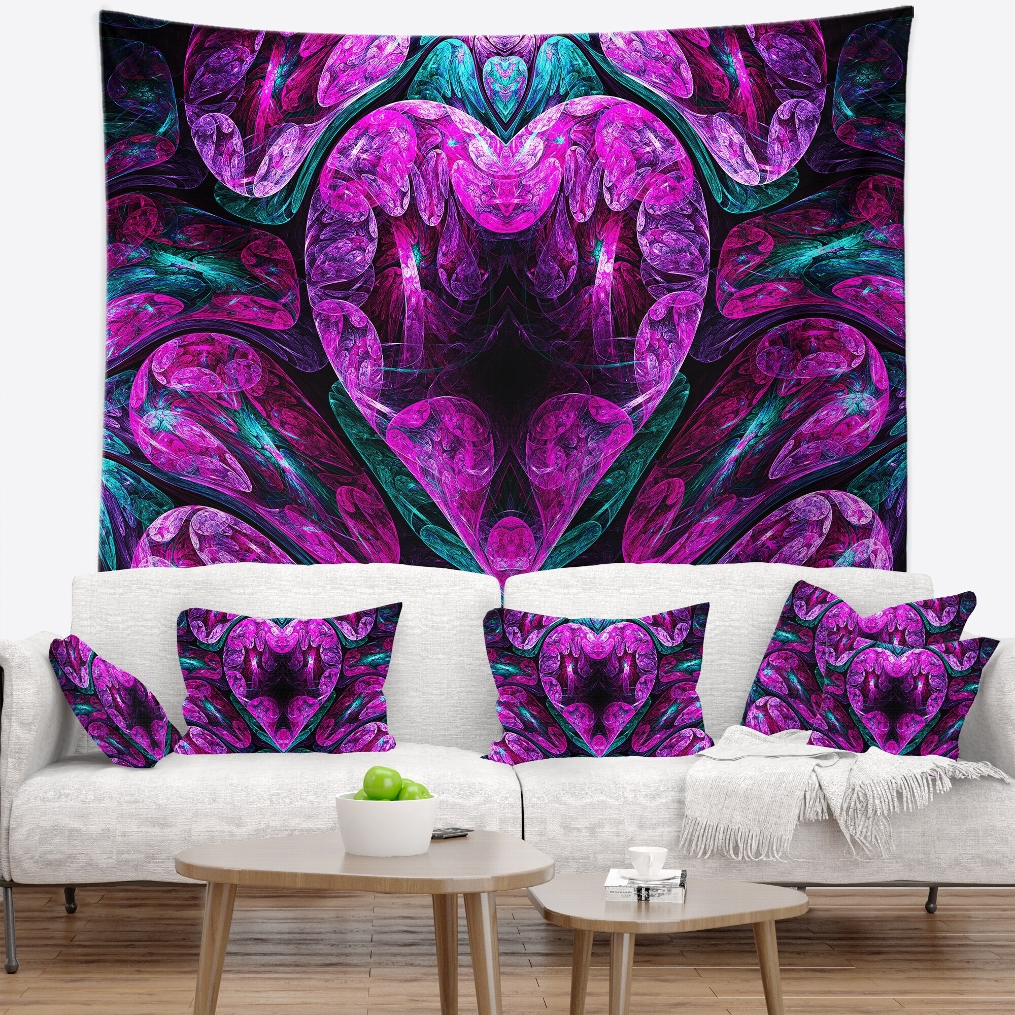 Designart 'Purple Cold Mystical Heart' Floral Wall Tapestry