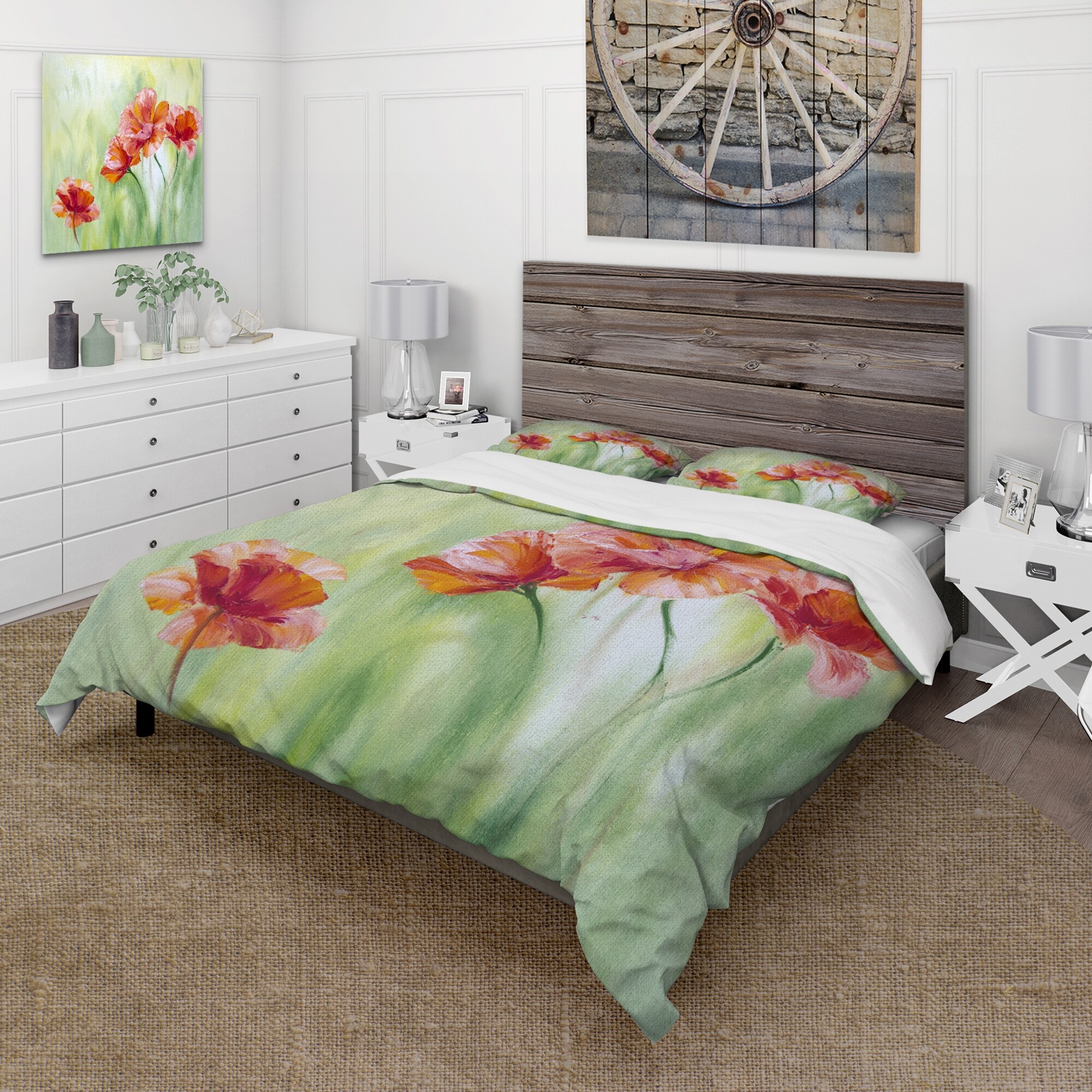 Designart 'Red Blossoming Poppies I' Traditional Duvet Cover Comforter Set