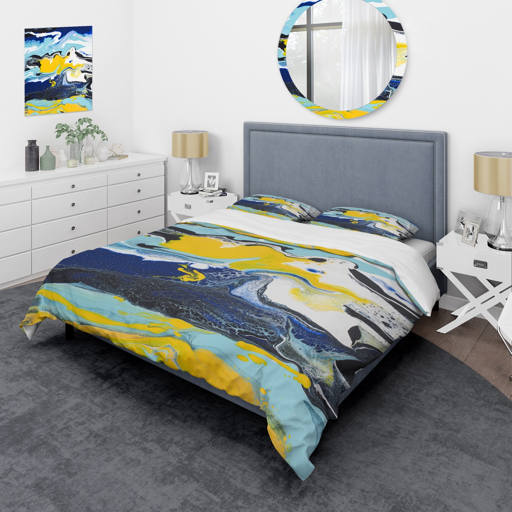 Designart 'Abstract Marble Composition in Yellow and Blue II' Modern Duvet Cover Comforter Set