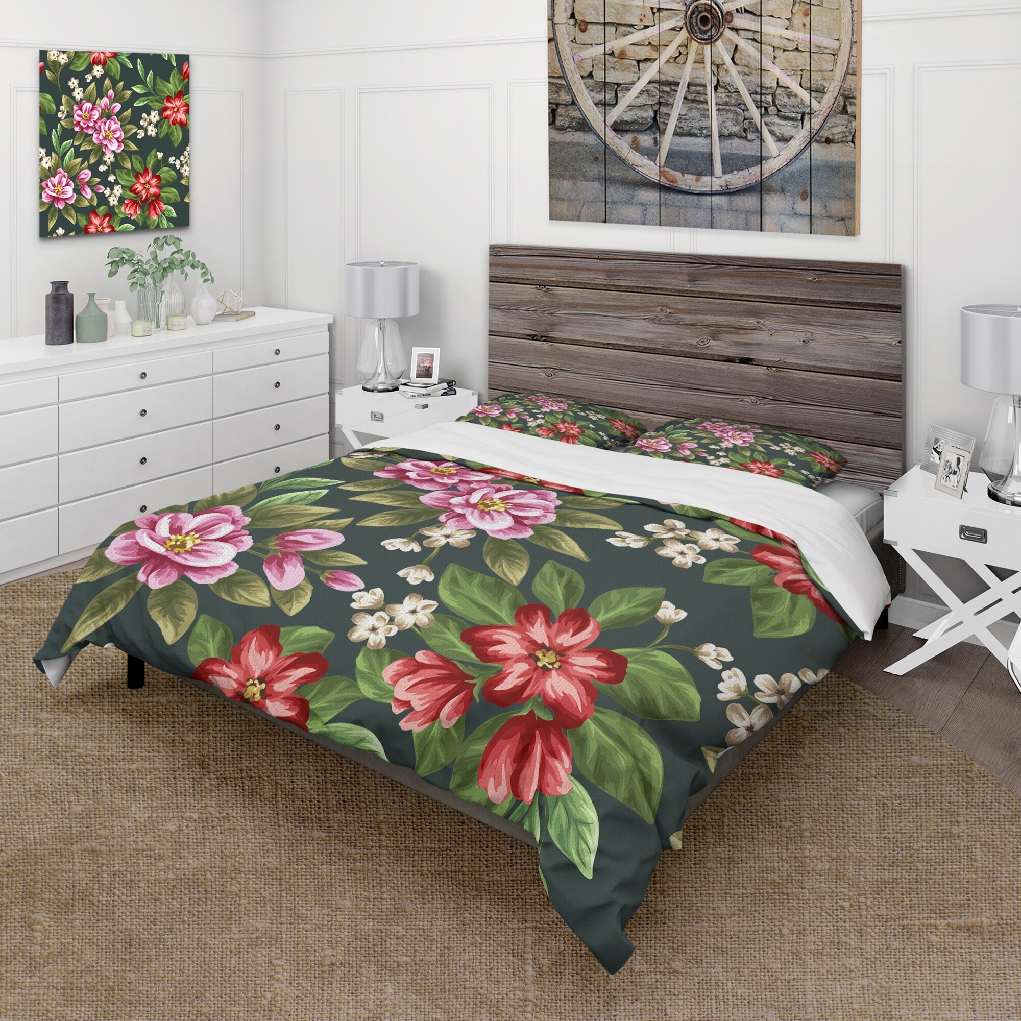 Designart 'Vintage Pink and Red Wildflowers I' Traditional Duvet Cover Comforter Set