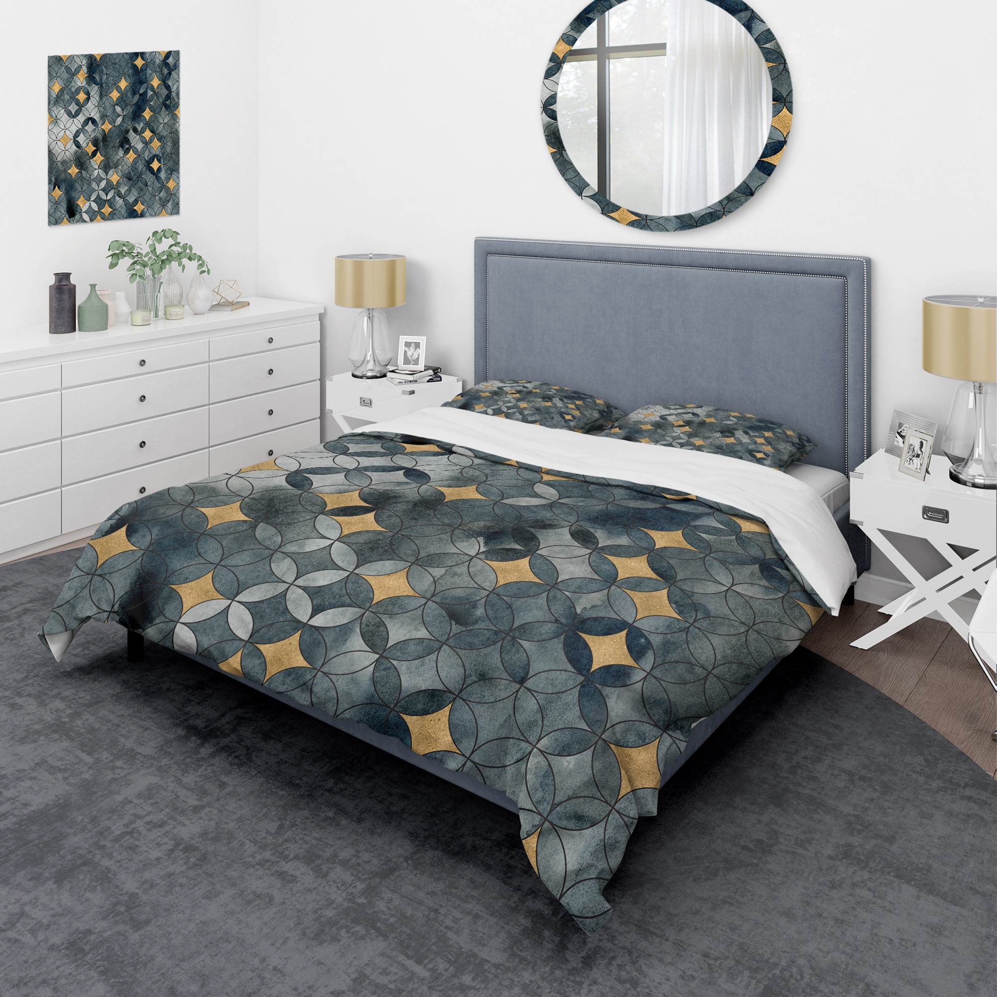 Designart 'Geometry Intersecting Circles WIth Golden Stars' Modern Duvet Cover Comforter Set
