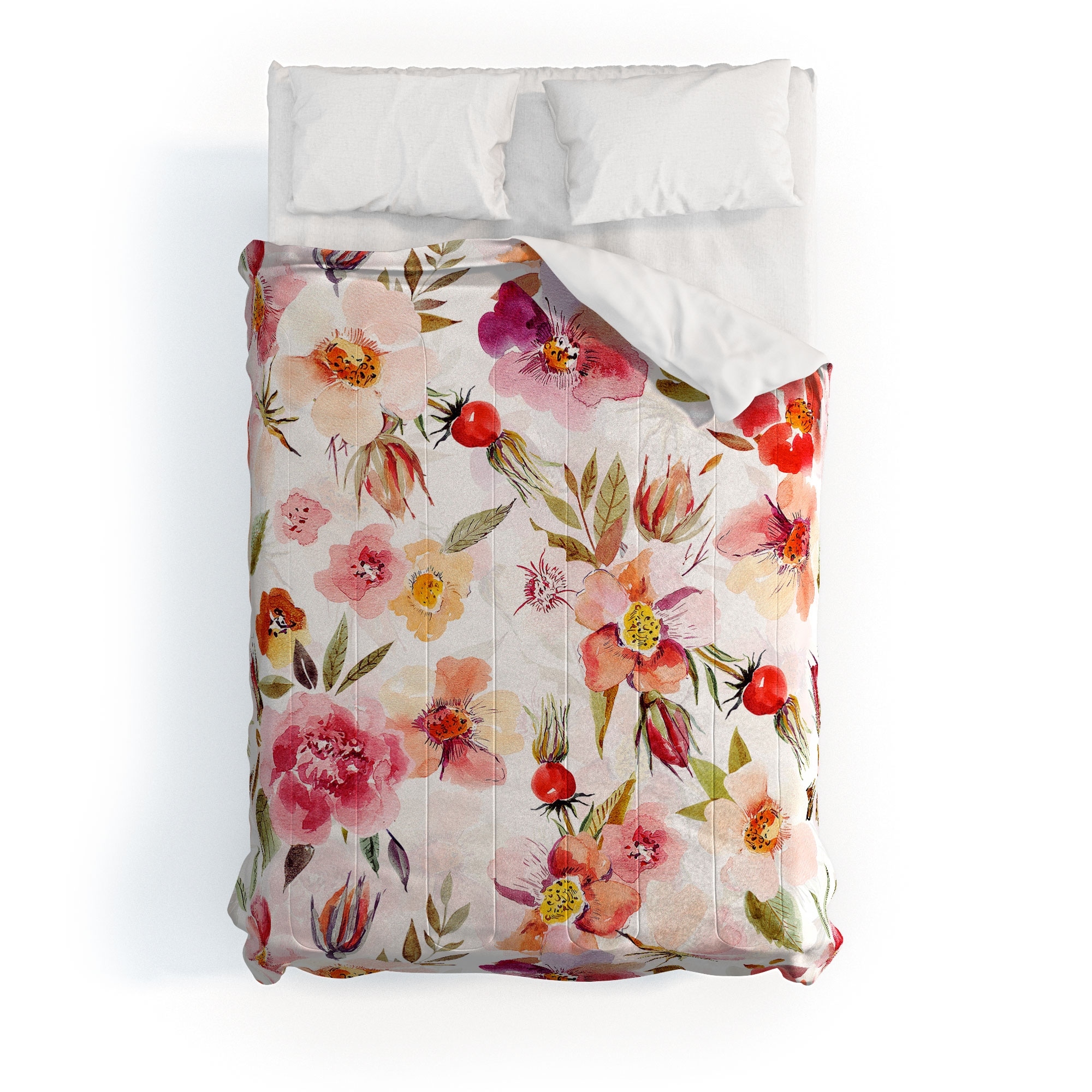 Utart Hygge Watercolor Midsummer Dogroses Pattern Made to Order Full Comforter Set