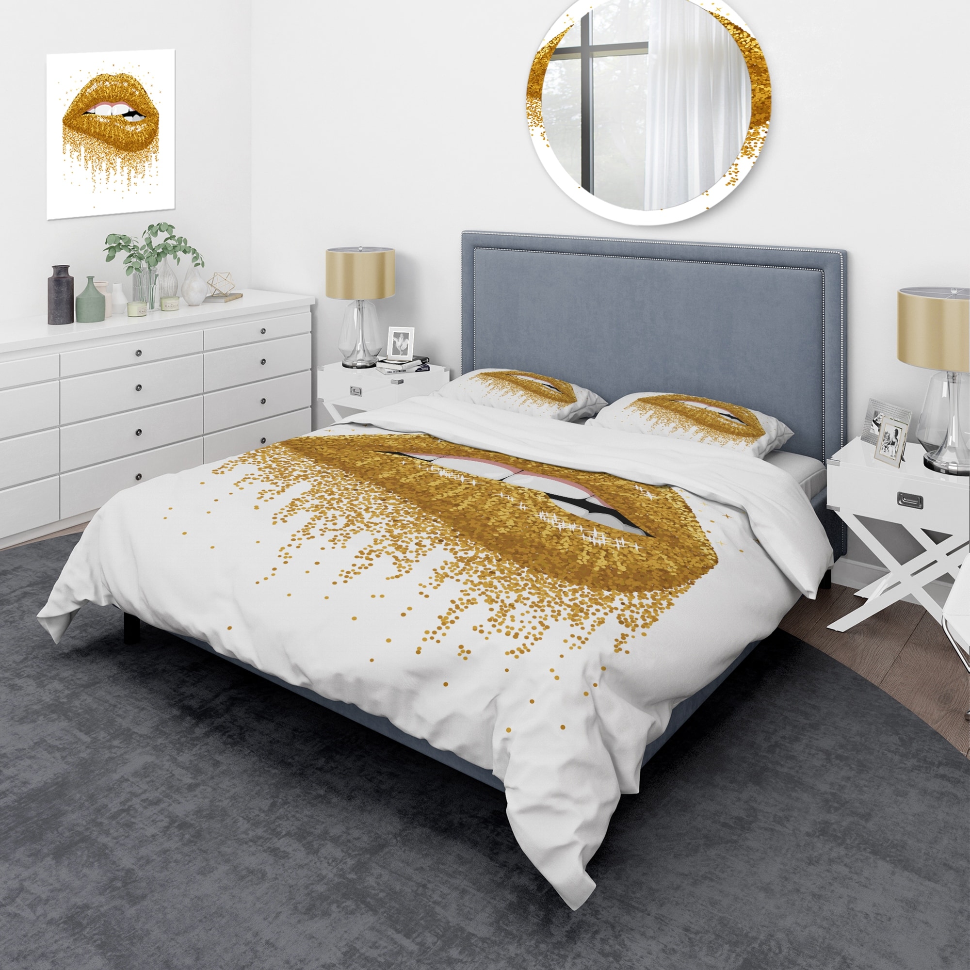 Designart 'Woman Lips With Glitter Gold Sparkles' Modern Duvet Cover Comforter Set