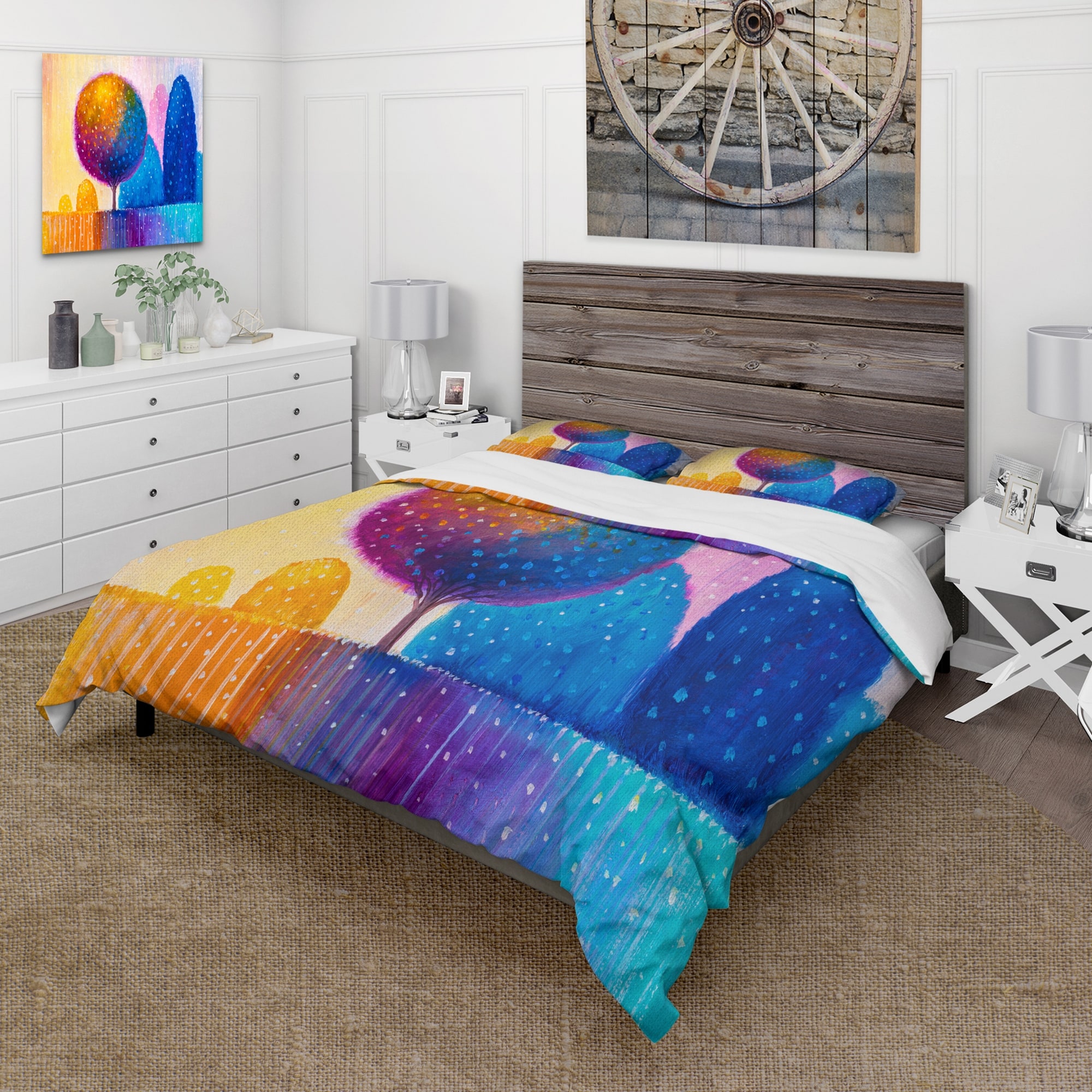 Designart 'Colourful Trees Impressionist Landscape II' Modern Duvet Cover Comforter Set