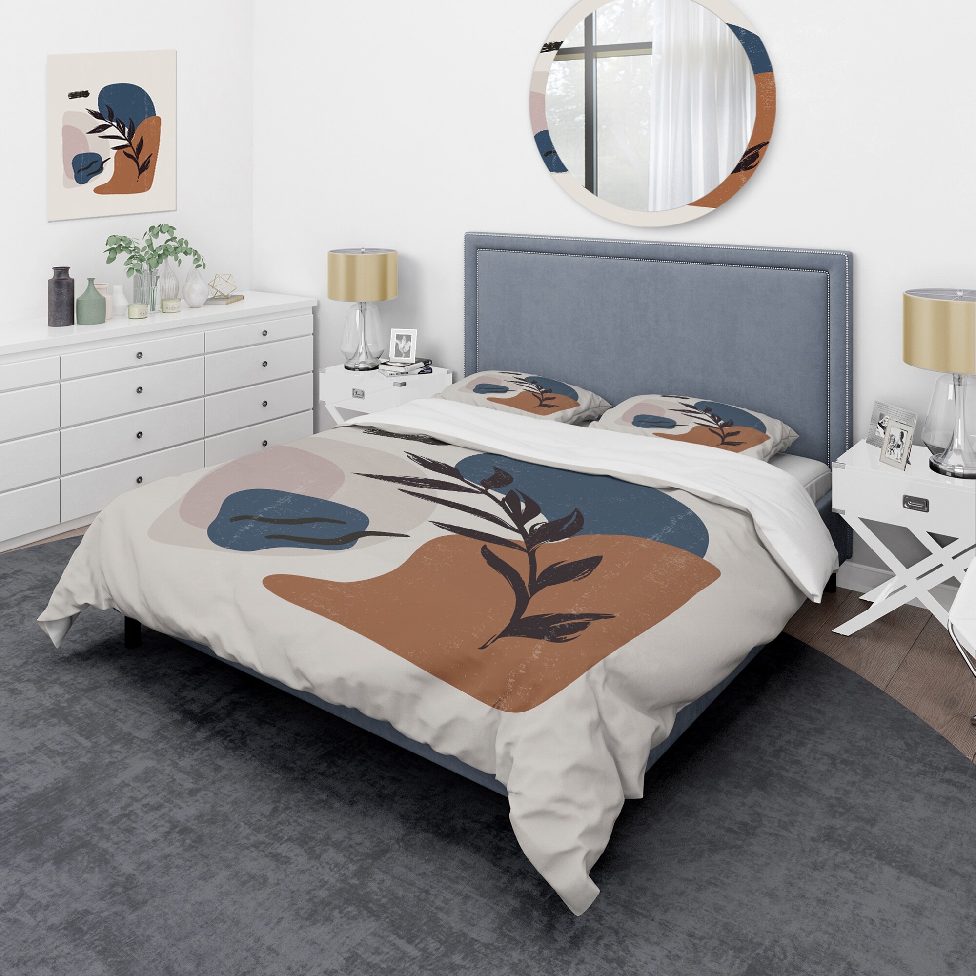 Designart 'Botanical Minimalist Leaf With Abstract Shapes IV' Modern Duvet Cover Comforter Set