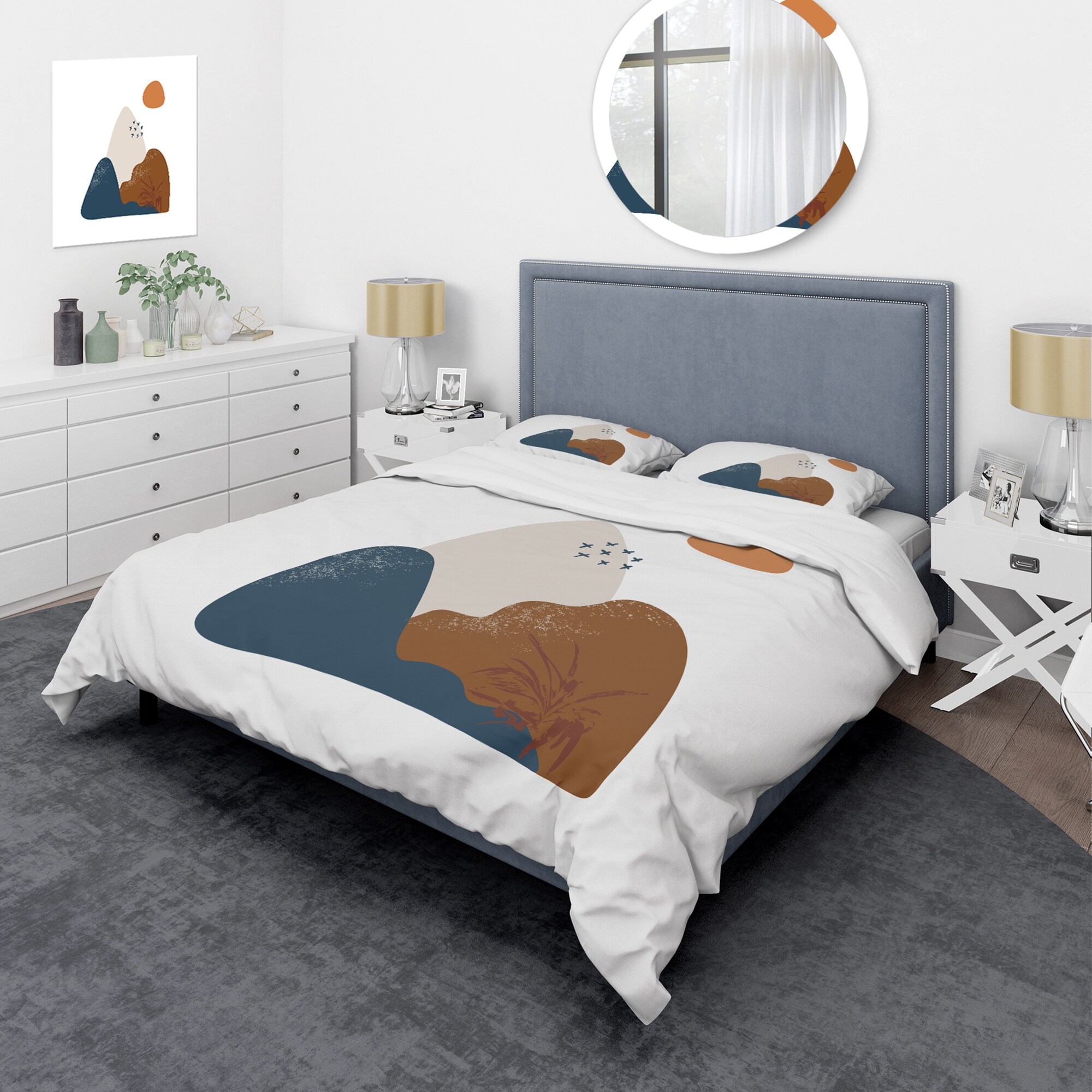 Designart 'Abstract Sun and Moon in Mountains I' Modern Duvet Cover Comforter Set