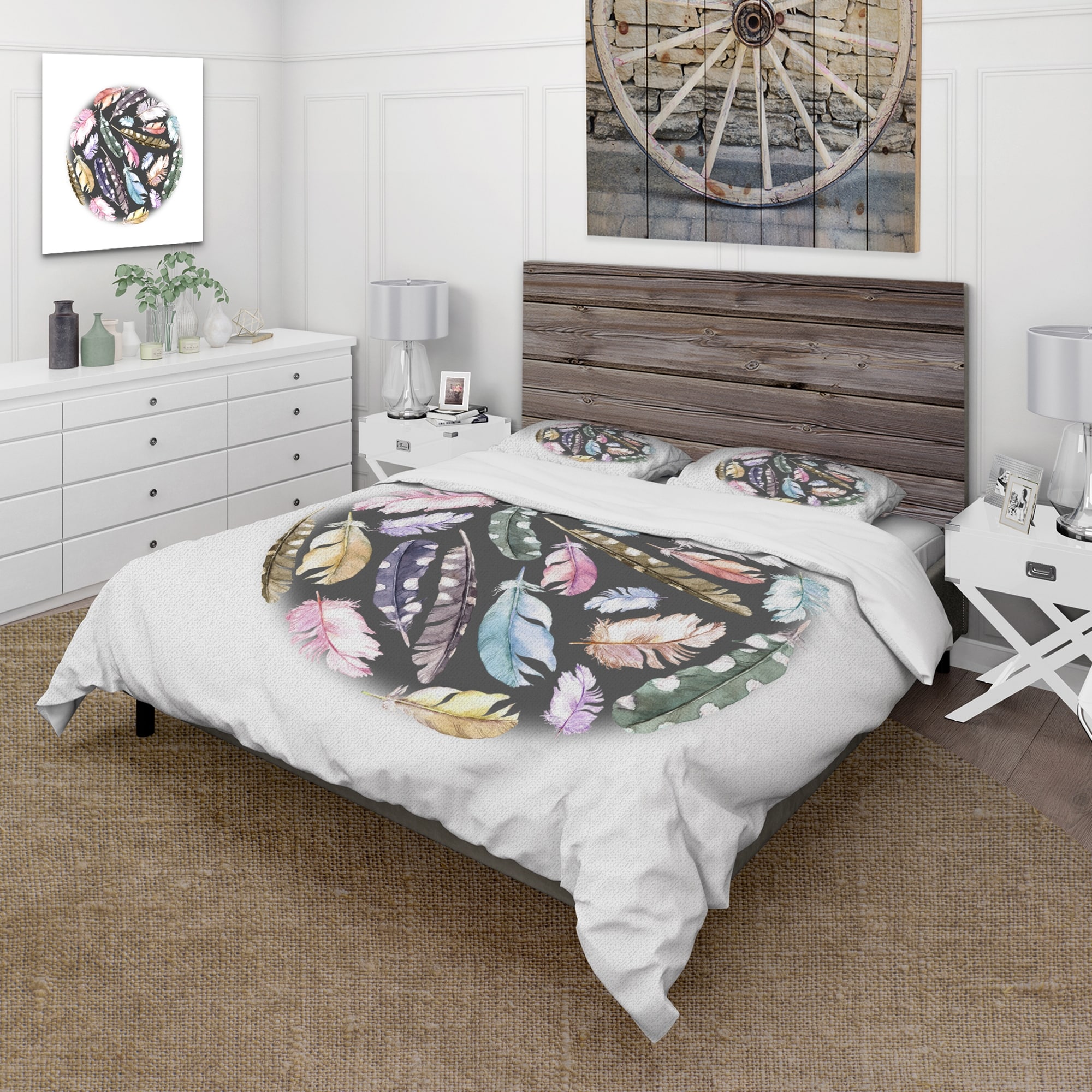 Designart 'Colorful Boho Feathers in Circle' Bohemian & Eclectic Duvet Cover Comforter Set