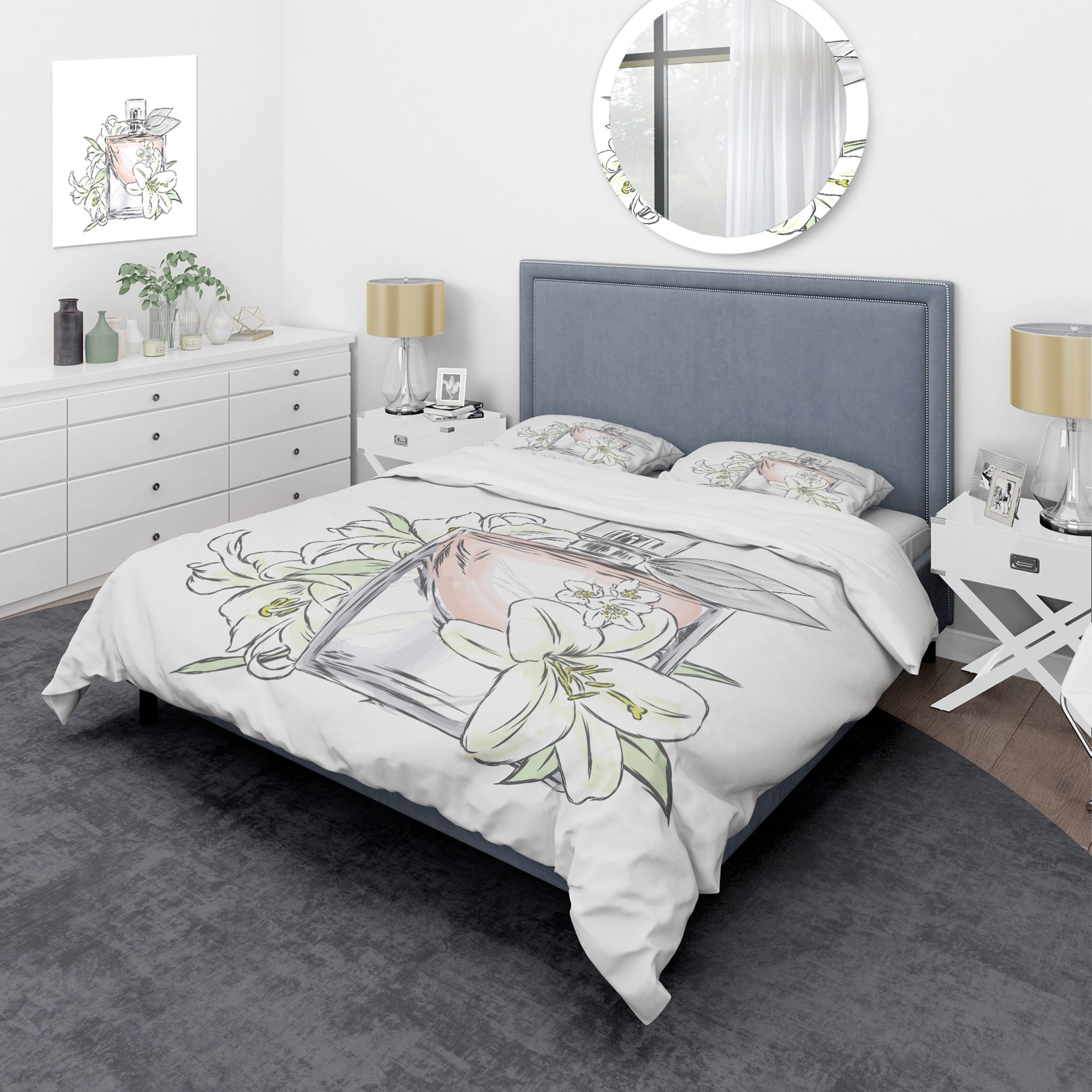 Designart 'Perfume Bottle and Bouquet of Flowers II' Traditional Duvet Cover Comforter Set