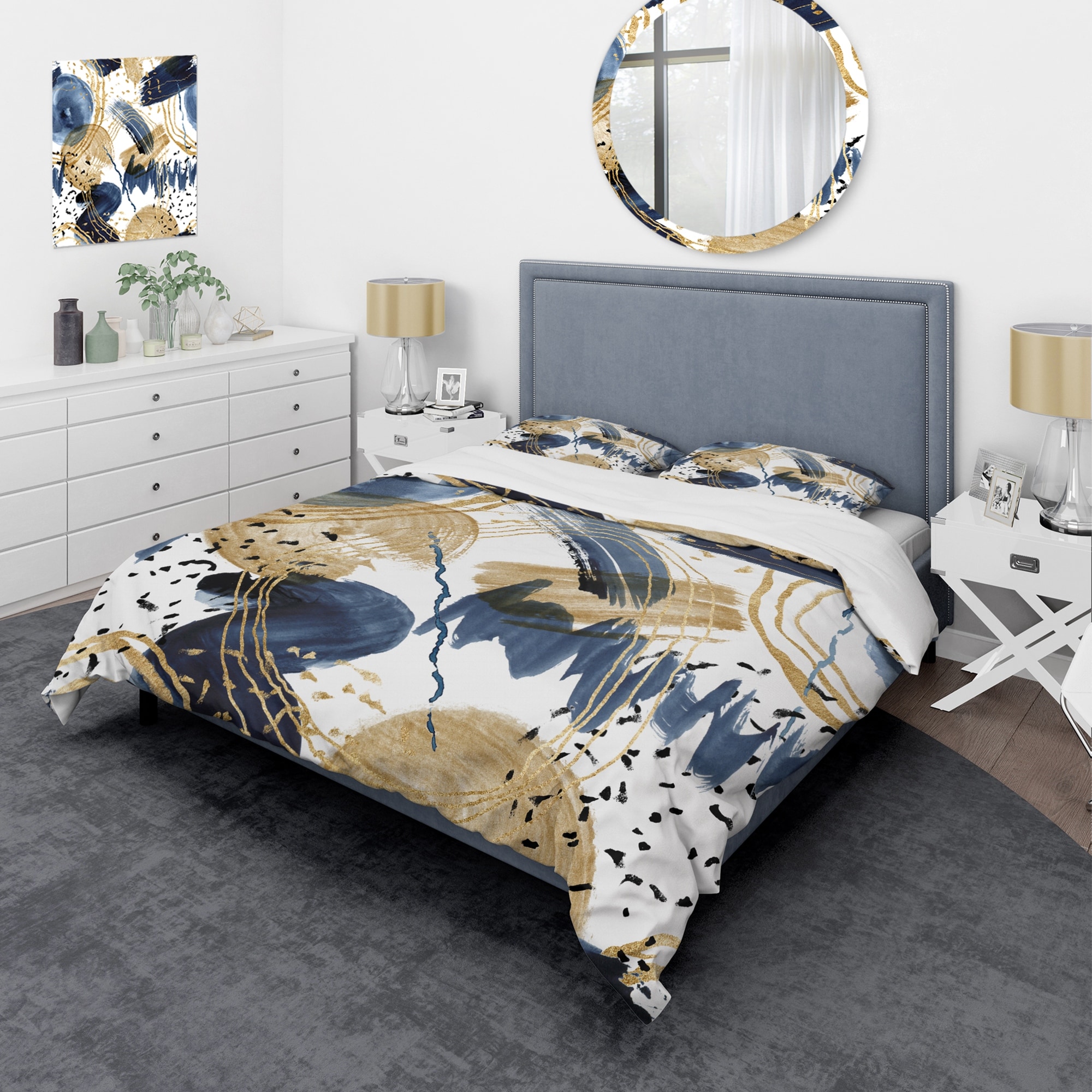 Designart 'Abstract Pattern With Dark Blue & Golden Textures' Modern Duvet Cover Comforter Set