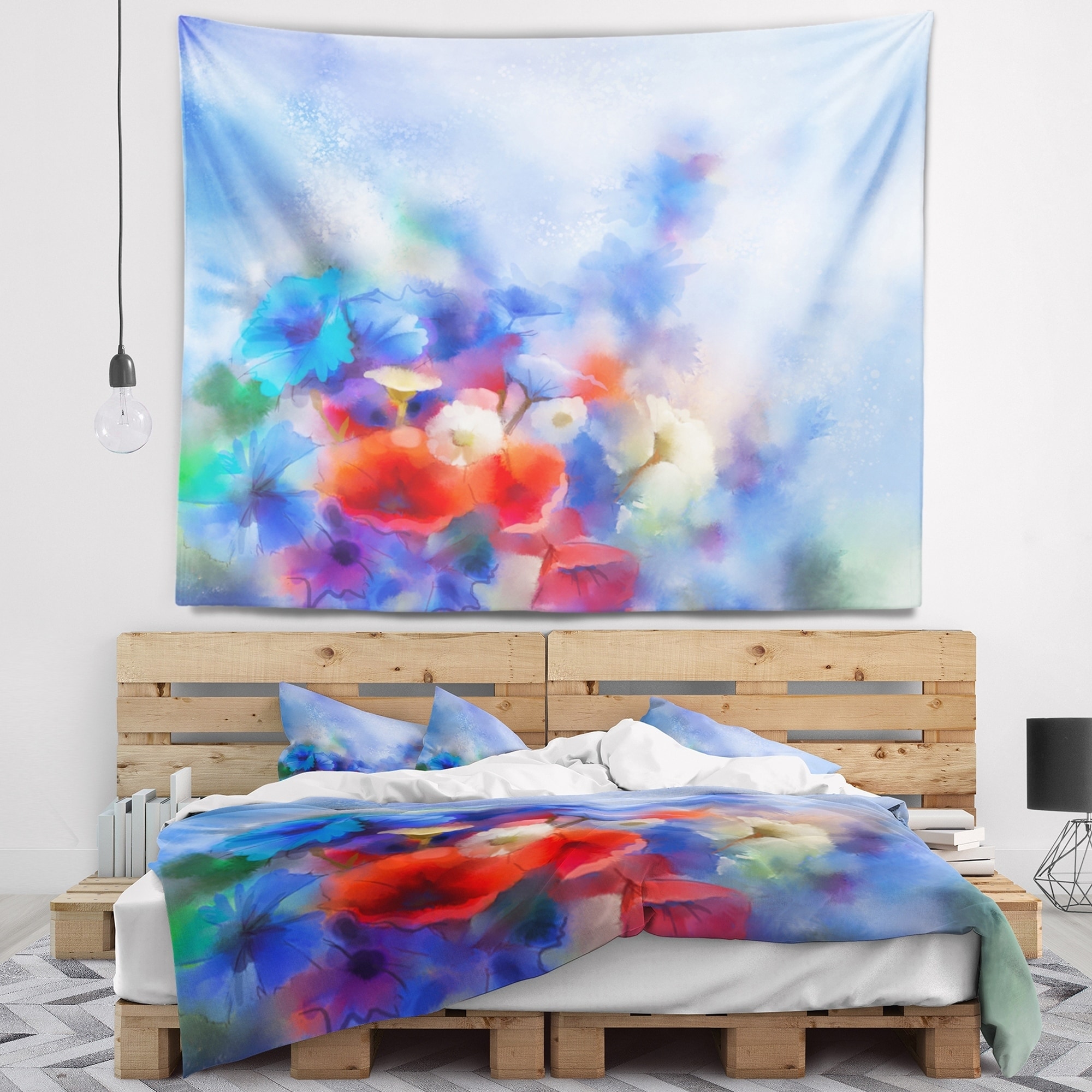 Designart 'Blue Corn Flowers and Red Poppies' Floral Wall Tapestry