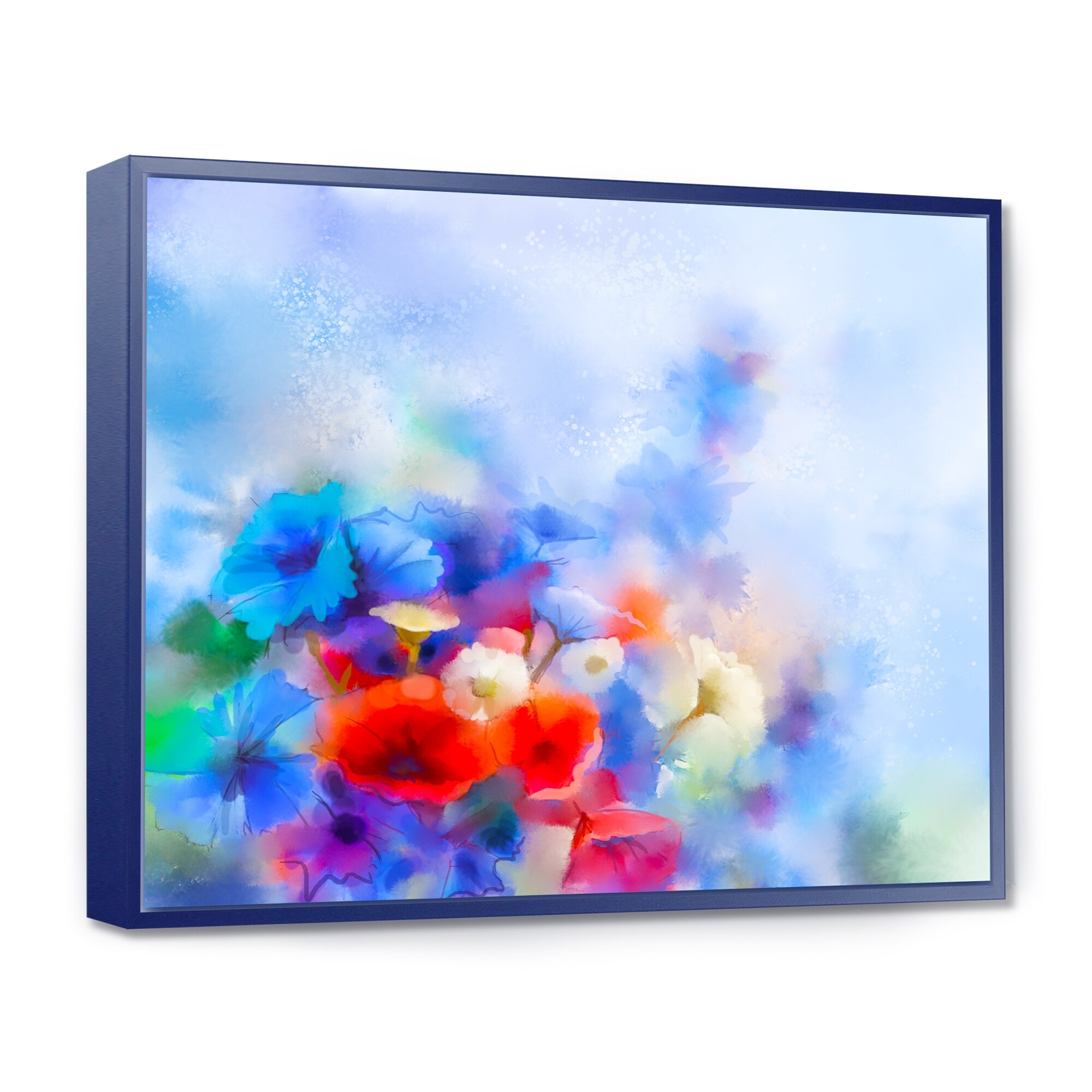 Designart "Blue Corn Flowers and Red Poppies" Floral Framed Canvas Art Print