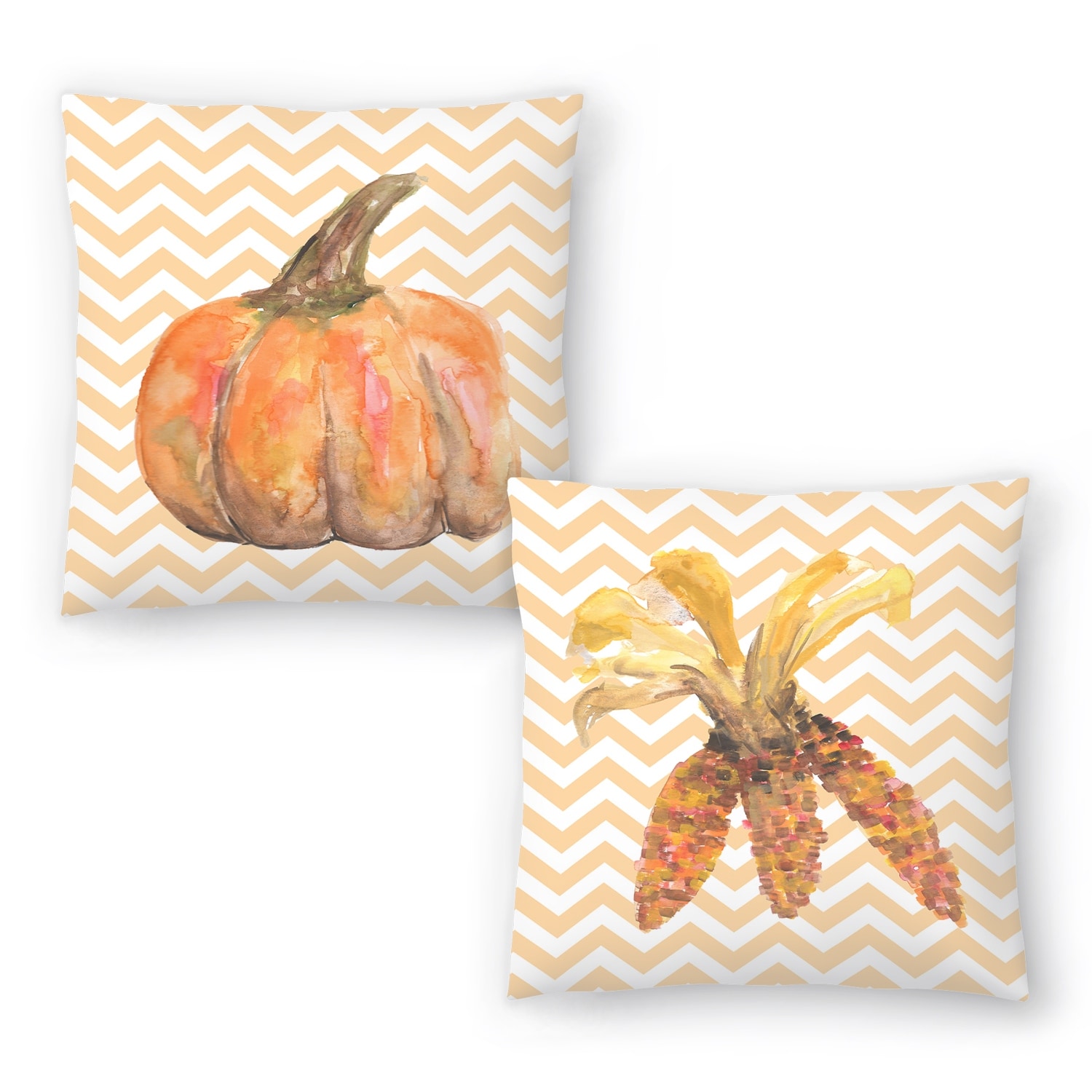 Chevron Pumpkin Autumn Print and Chevron Corn Autumn Print - Set of 2 Decorative Pillows