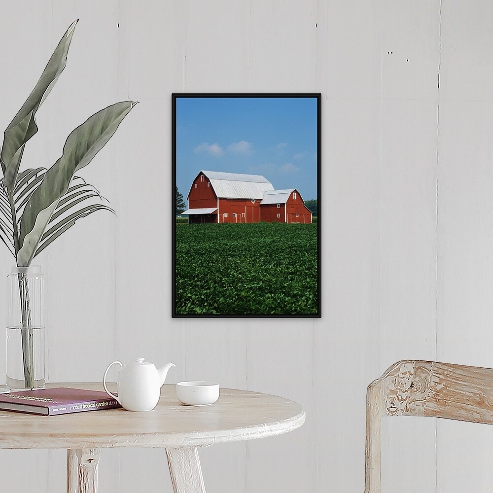 "Barn and Corn Field " Black Float Frame Canvas Art
