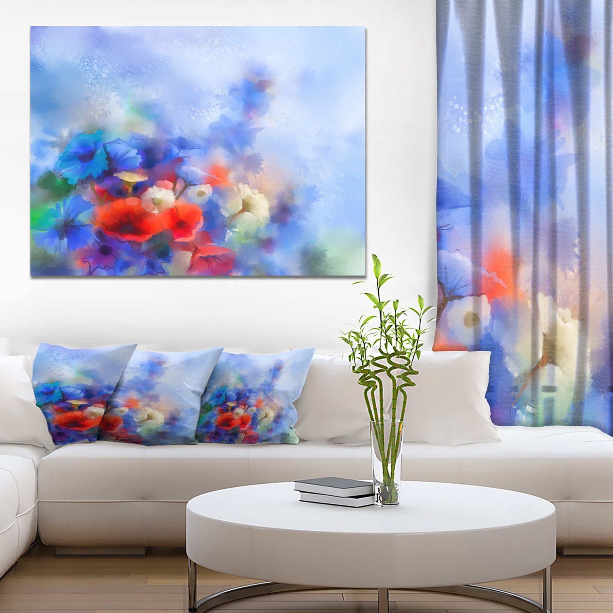 Designart "Blue Corn Flowers and Red Poppies" Flower Canvas Print Artwork