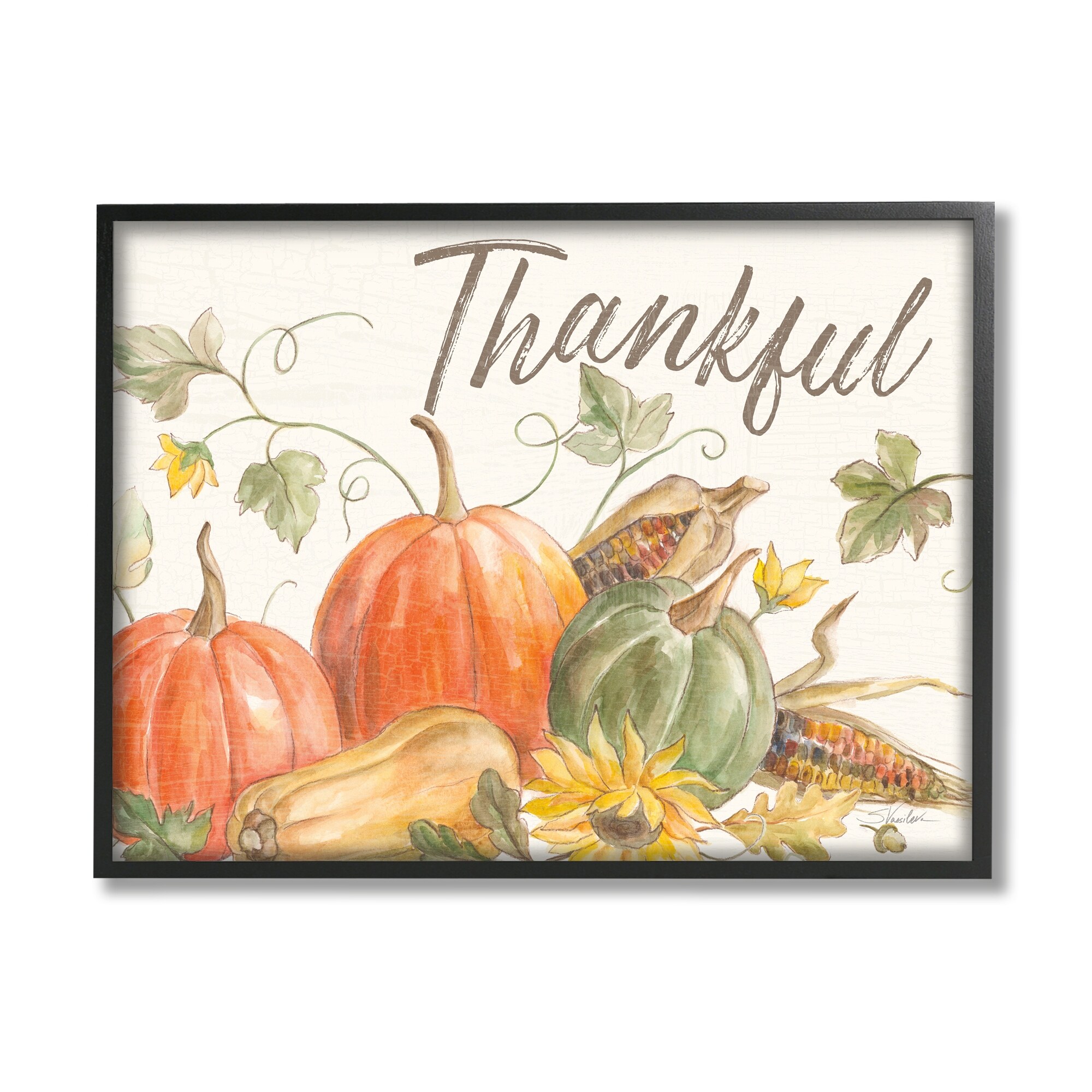 Stupell Thankful Sentiment Autumn Pumpkin Corn Harvest Framed Wall Art - Orange