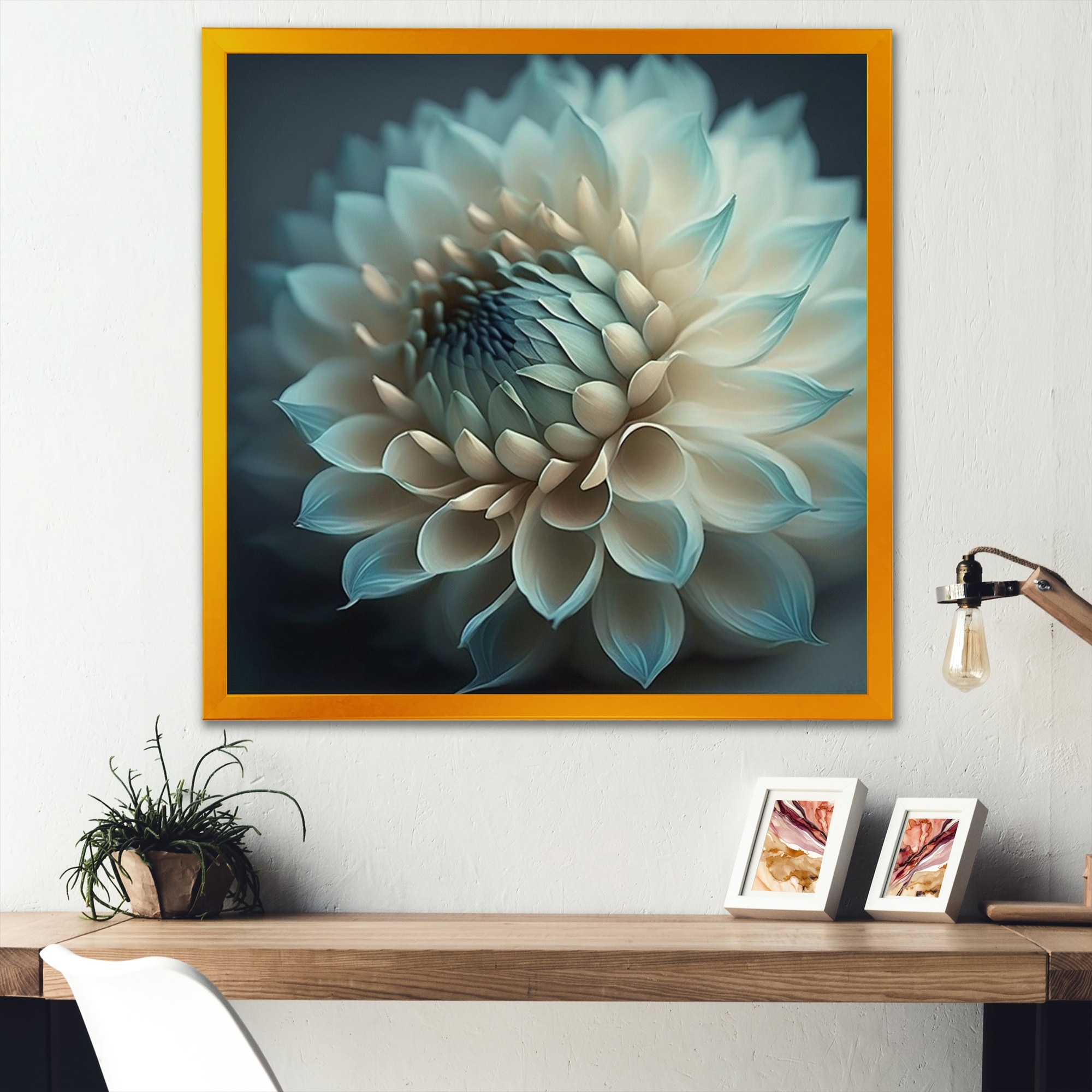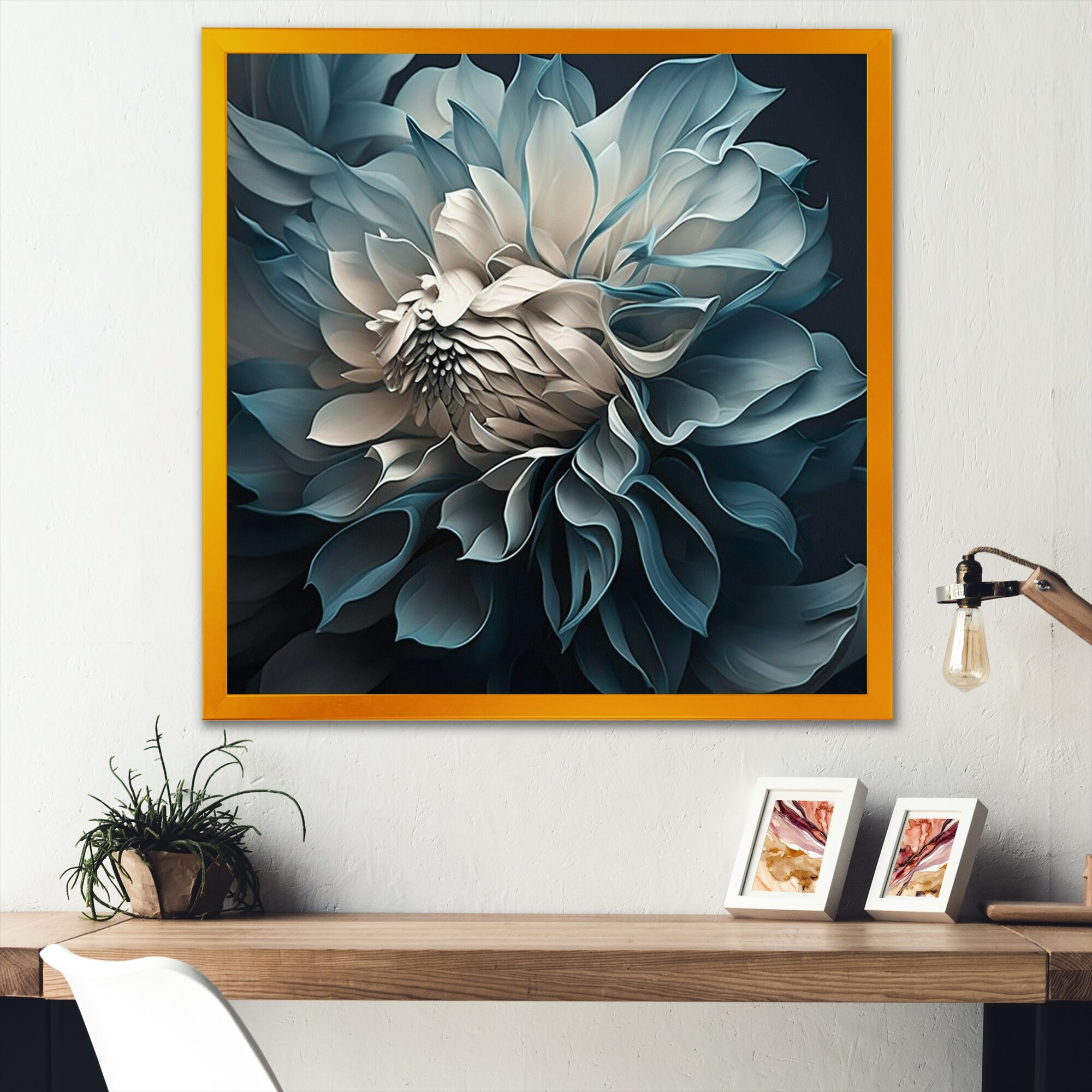 Designart "Blue And White Dahlia Flowers IV" Floral Dahlia Framed Art Print