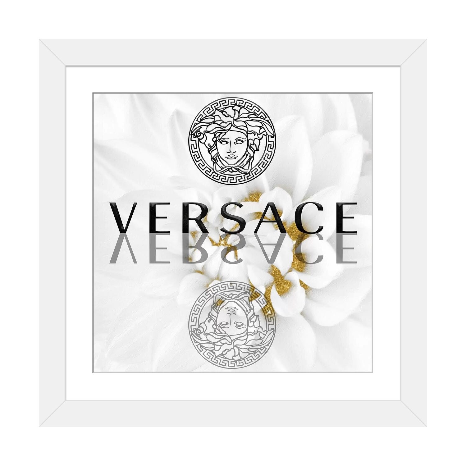 iCanvas "Gold White Fashion Dahlia II" by Pomaikai Barron Framed