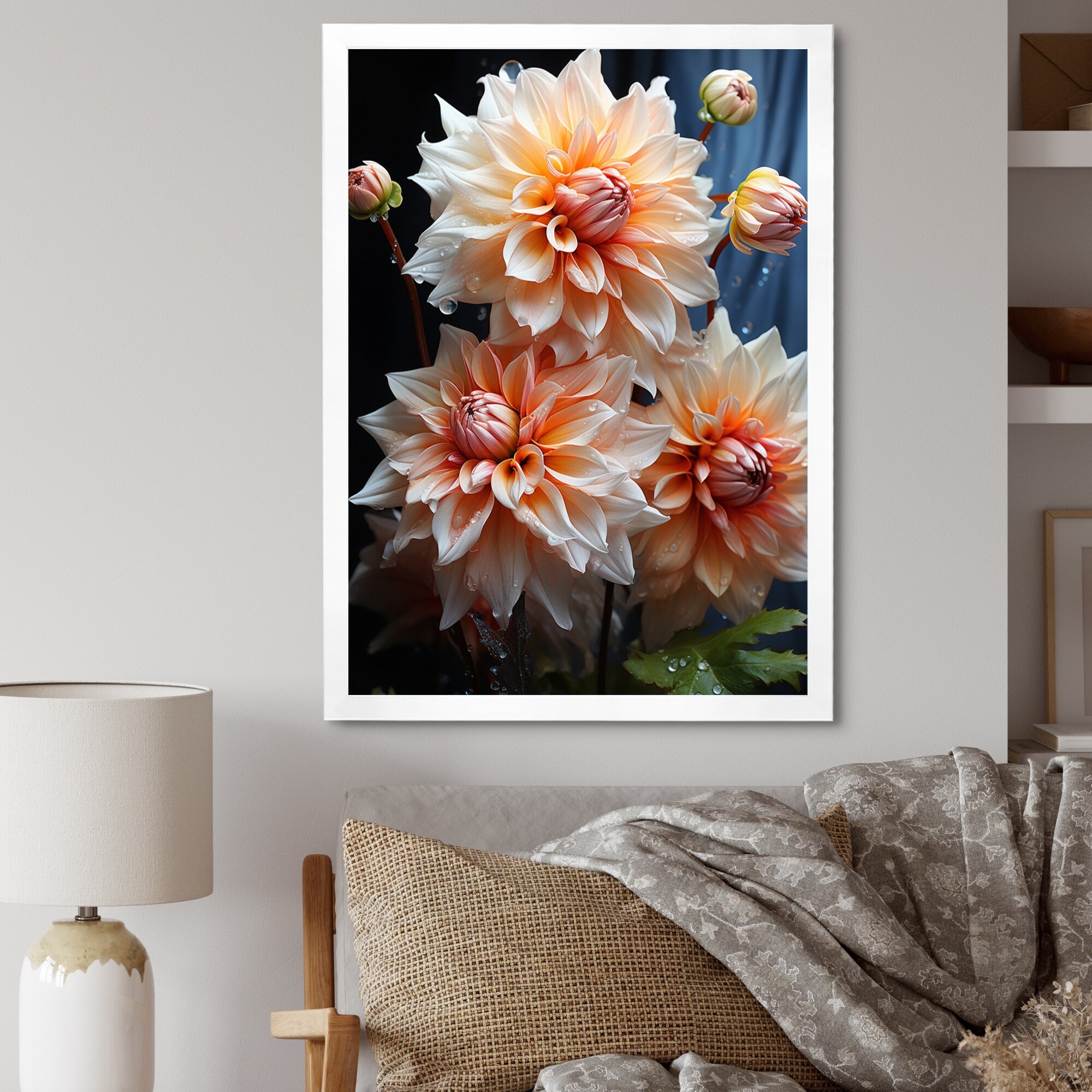 Designart "Peach Dahlia Romantic Impression" Dahlia Framed Canvas Art Print