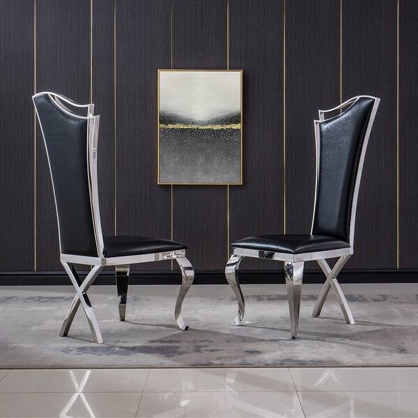 Leatherette Unique Design Backrest Dining Chair with Stainless Steel Legs Set of 2