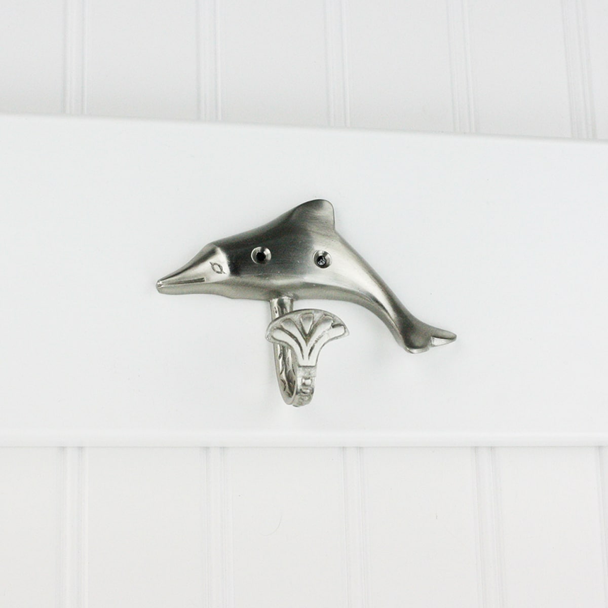 Highpoint Collection Satin Nickel Plated Dolphin Wall Hooks - Set of 4