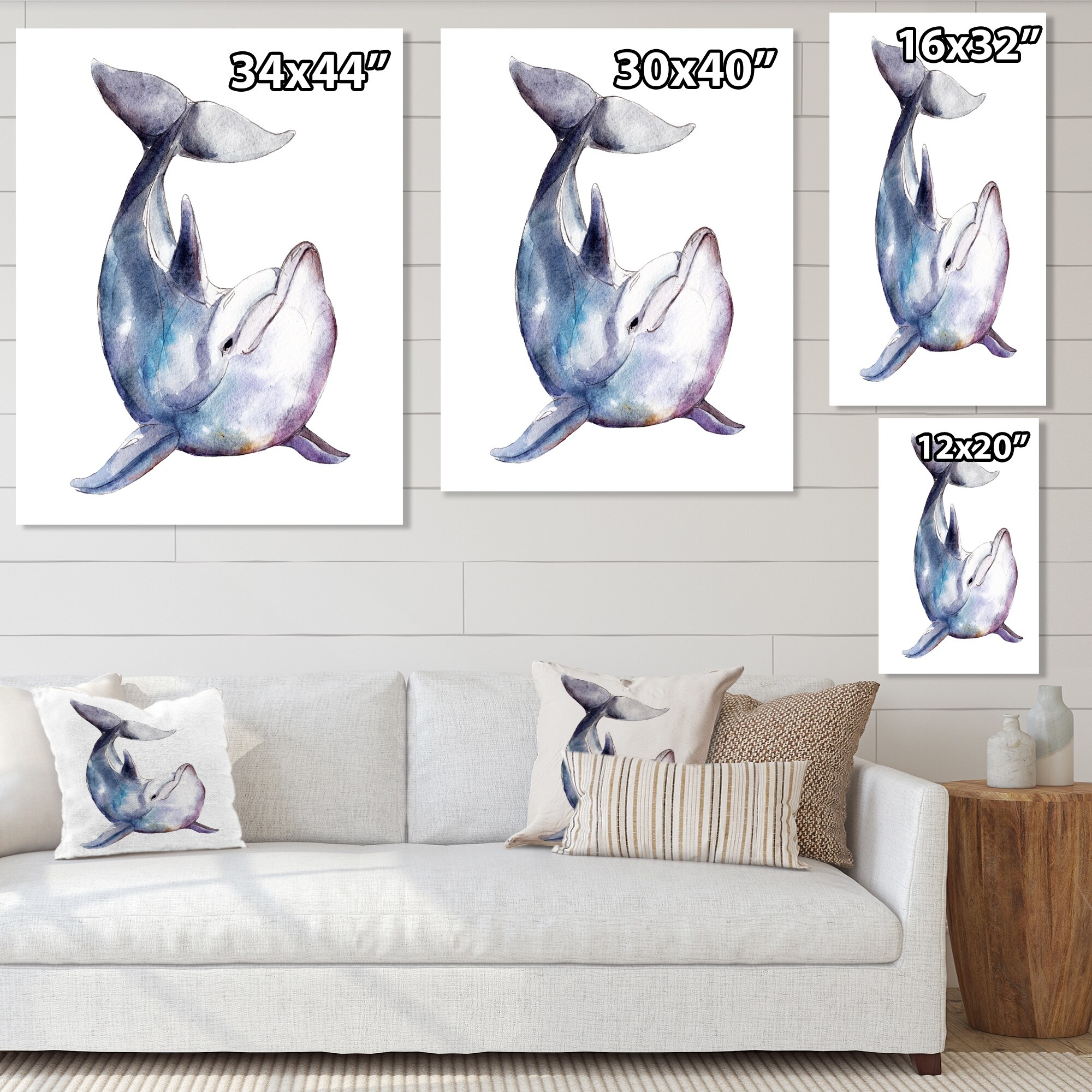 Designart "Blue Dolphin on White" Nautical & Coastal Canvas Wall Art Print