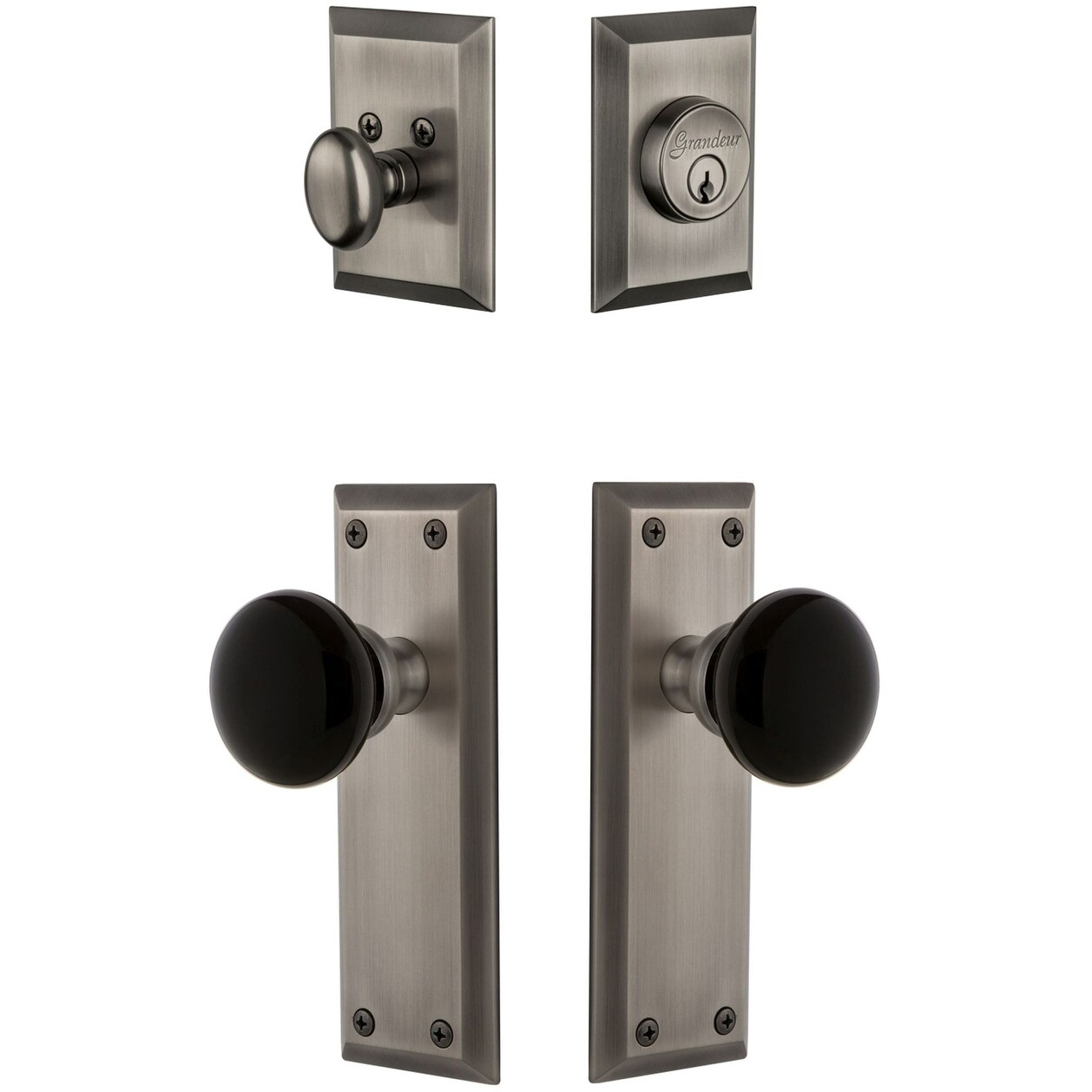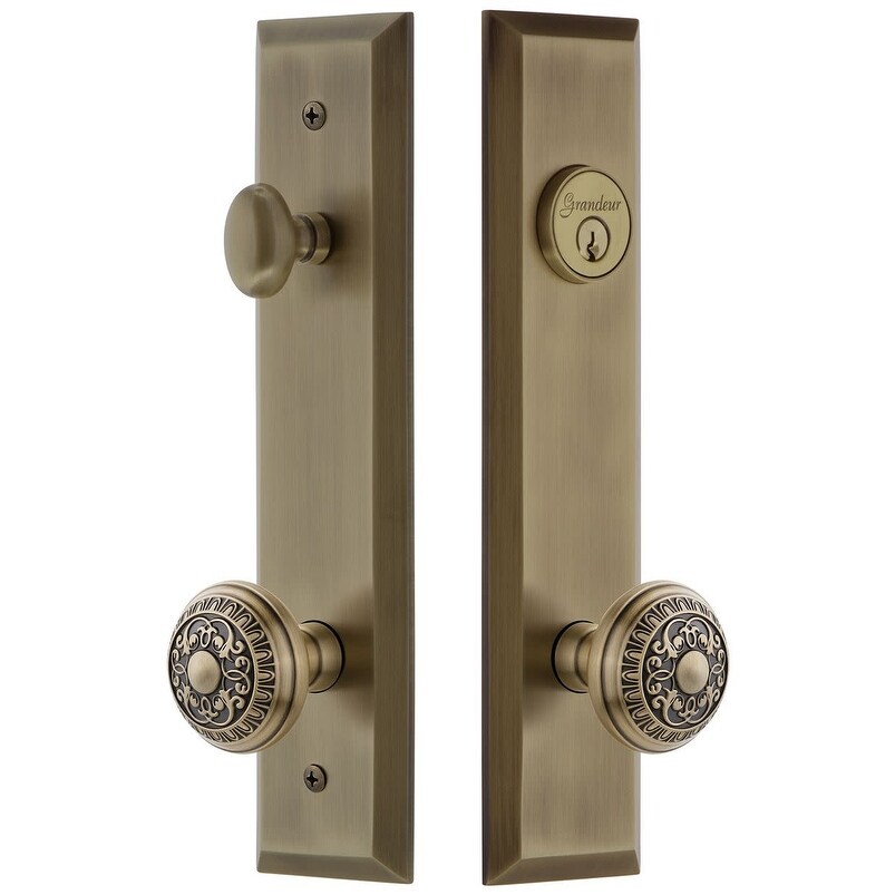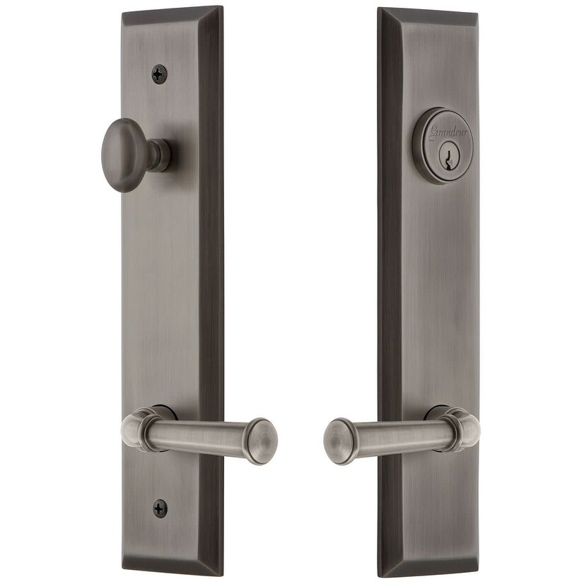 Grandeur Carre Solid Brass Tall Plate Single Cylinder Keyed Entry Set