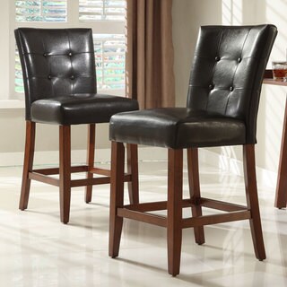 Tufted Button Dark Brown PU 24-inch Stools (Set of 2) by iNSPIRE Q Classic