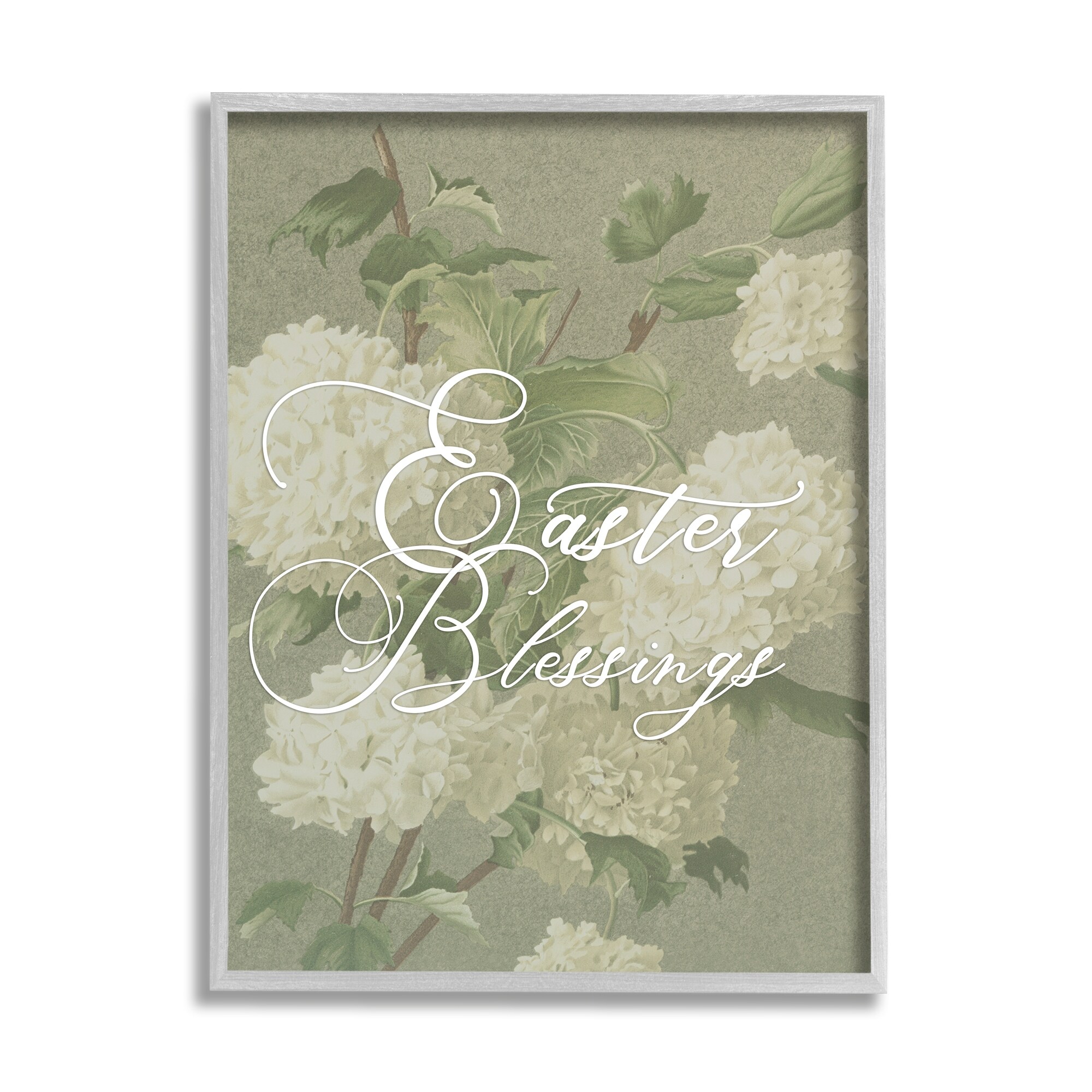 Stupell Industries Easter Blessings Sentiment Vintage White Hydrangea Florals Green Framed Wall Art
