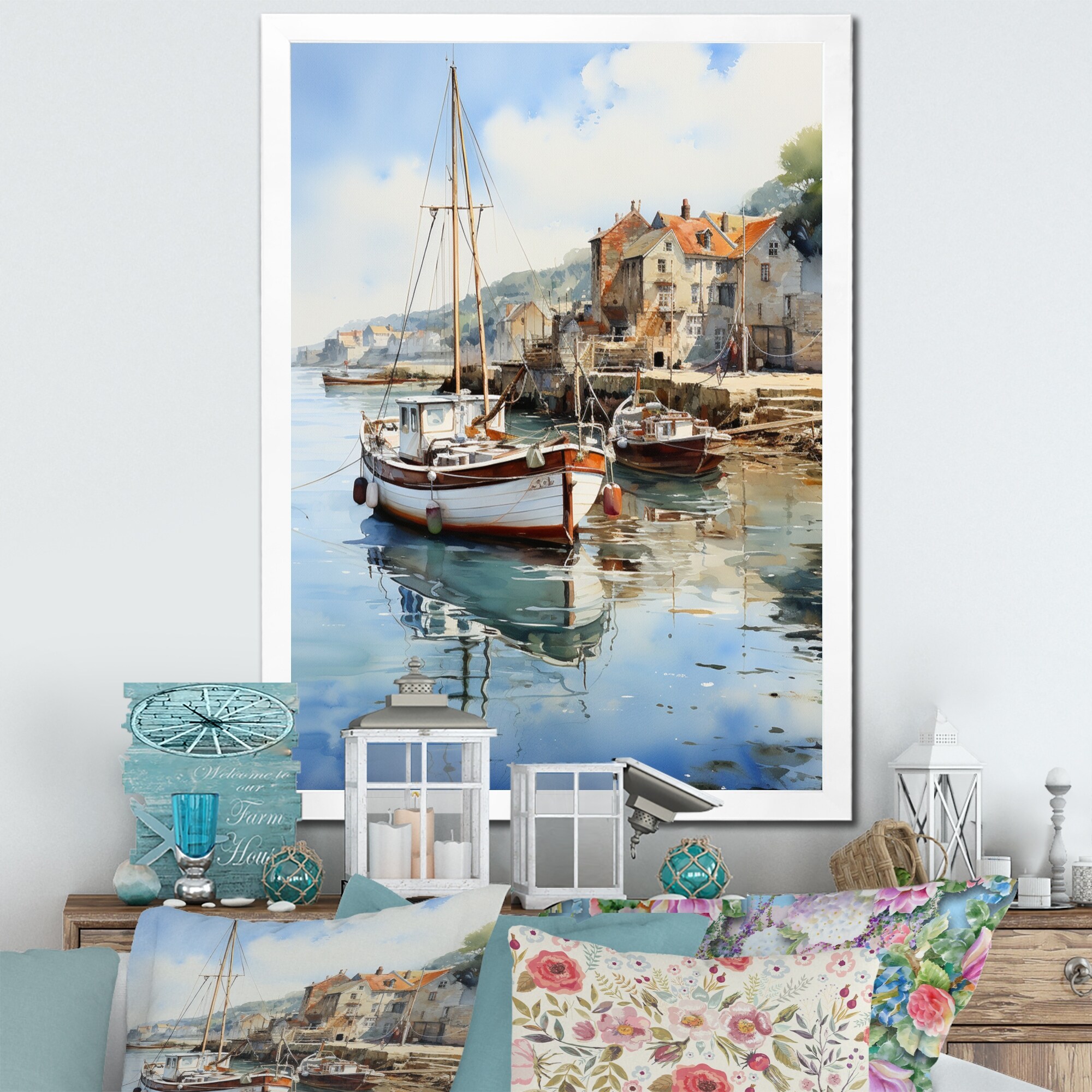Designart "England Calm Harborengland Landscape" England Framed Wall Decor