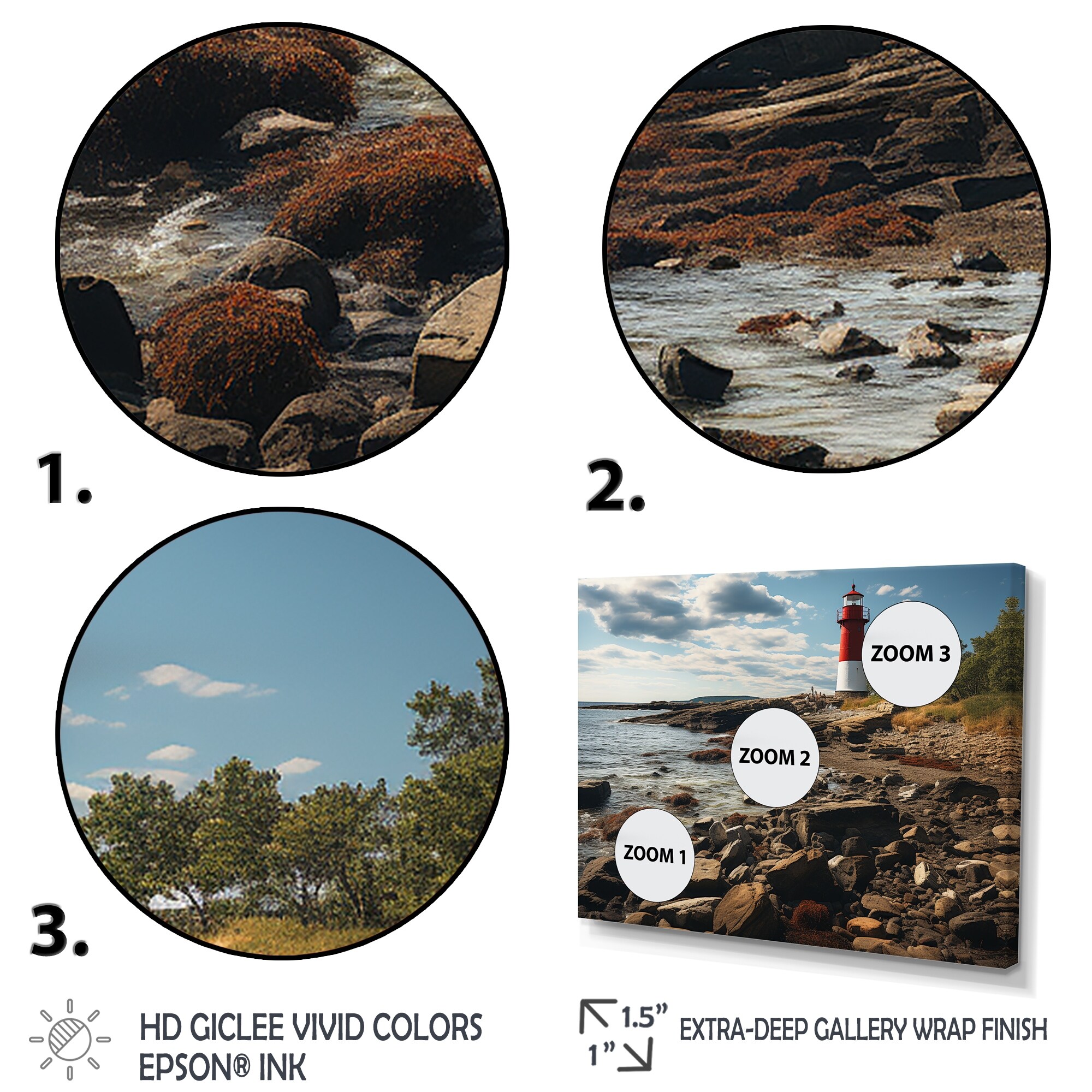 Designart "USA New England Sea Lighthouse" USA Framed Canvas Art Print