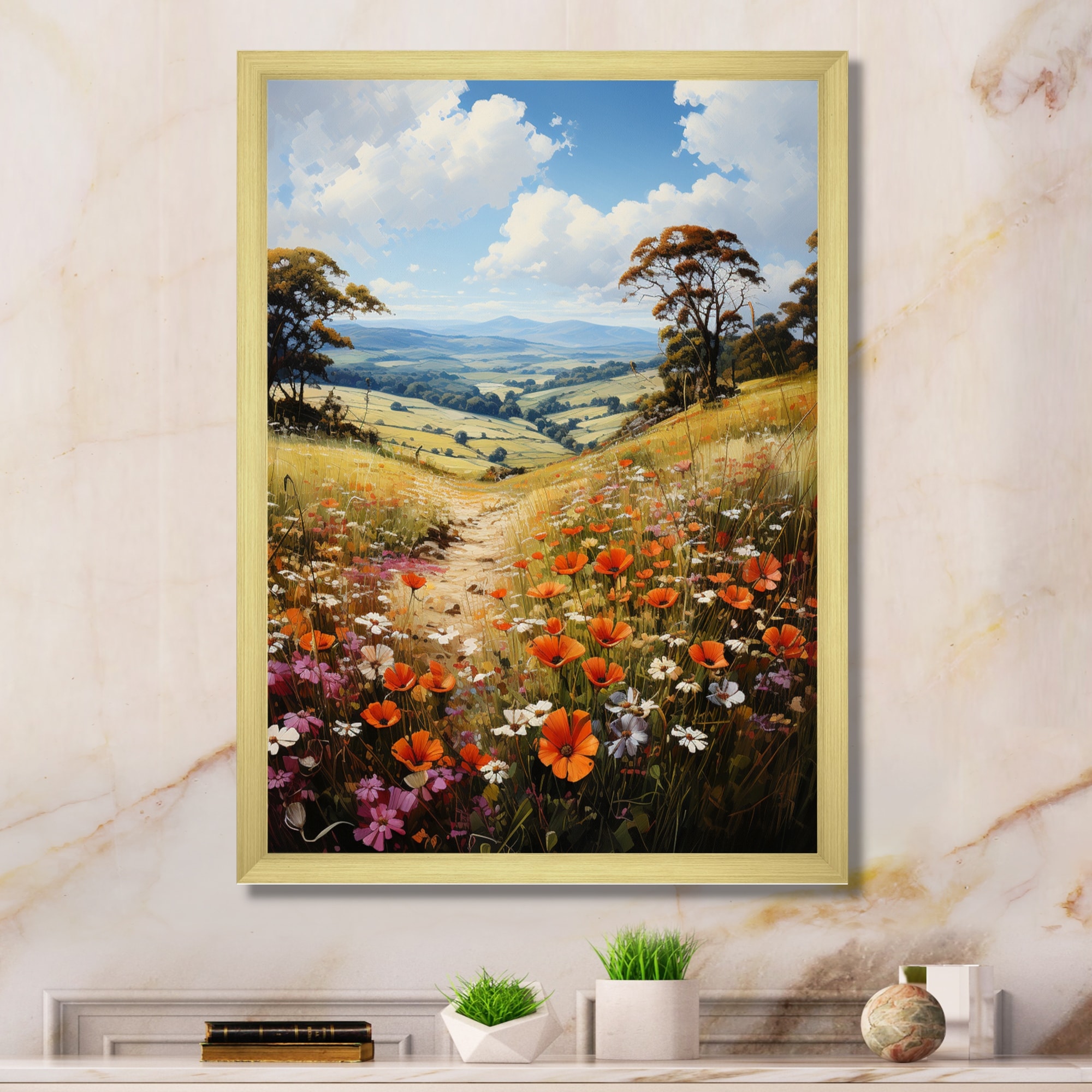 Designart "England Wildflower Meadowsengland Landscape" England Framed Canvas Wall Art